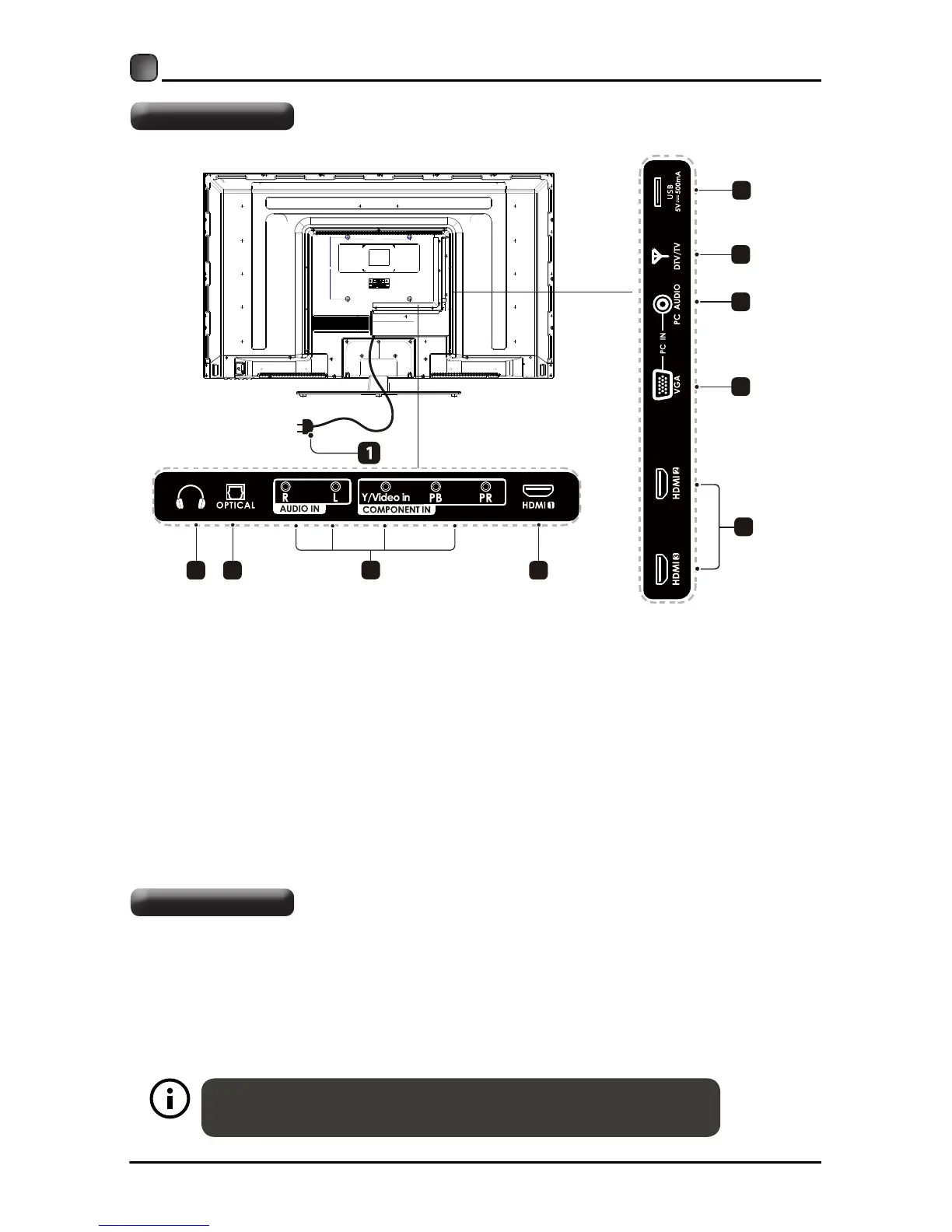 The TV is provided with mounting holes for a VESA approved wall mounting bracket (Not
