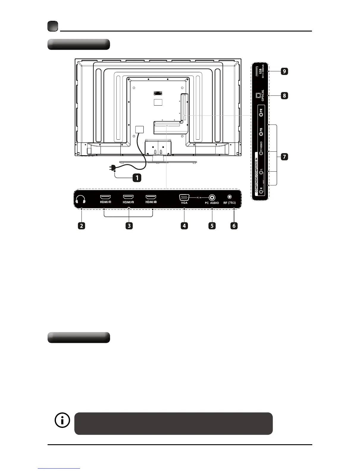 The TV is provided with mounting holes for a VESA approved wall mounting bracket (Not