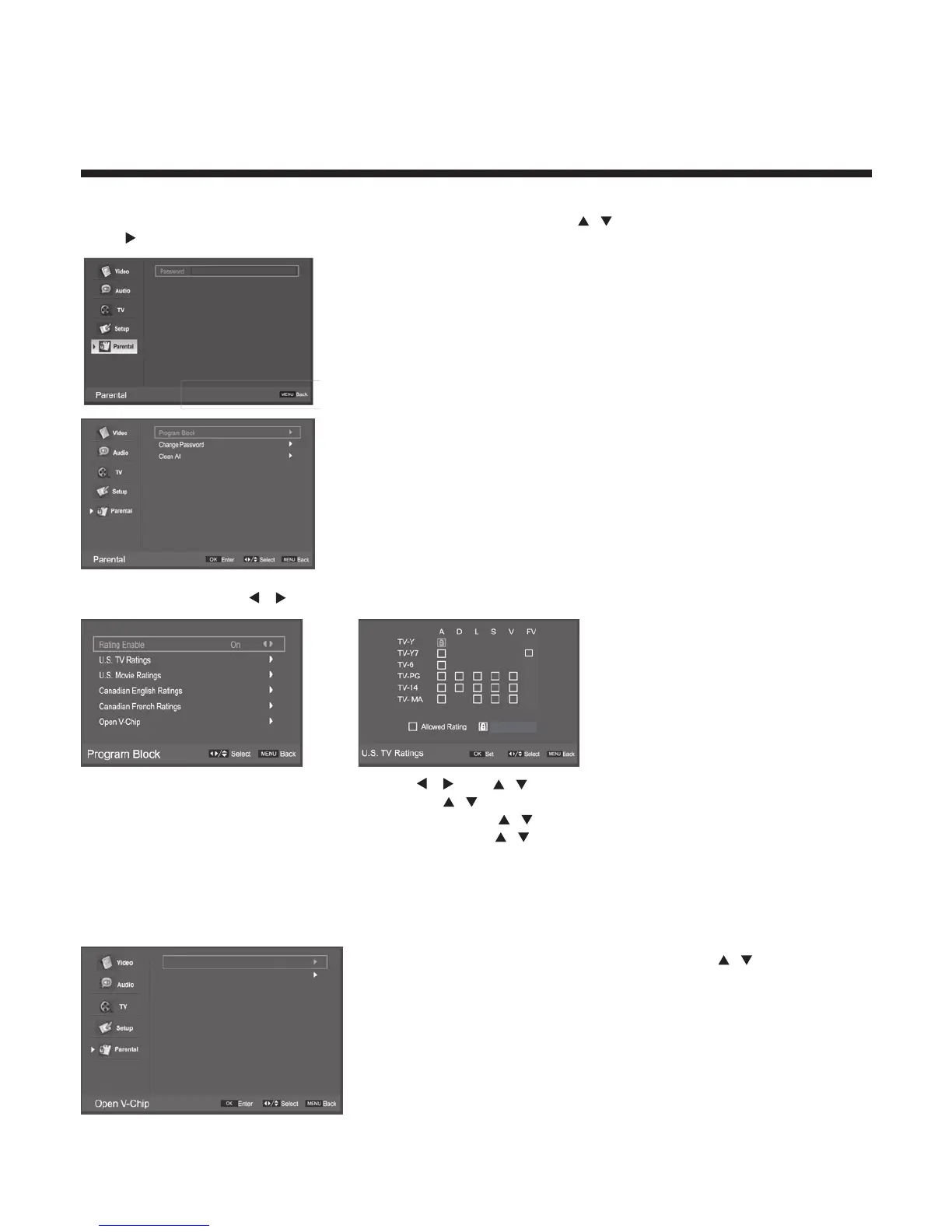 U.S. Movie Ratings: Press OK to enter, and use / to select, and press OK to confirm.