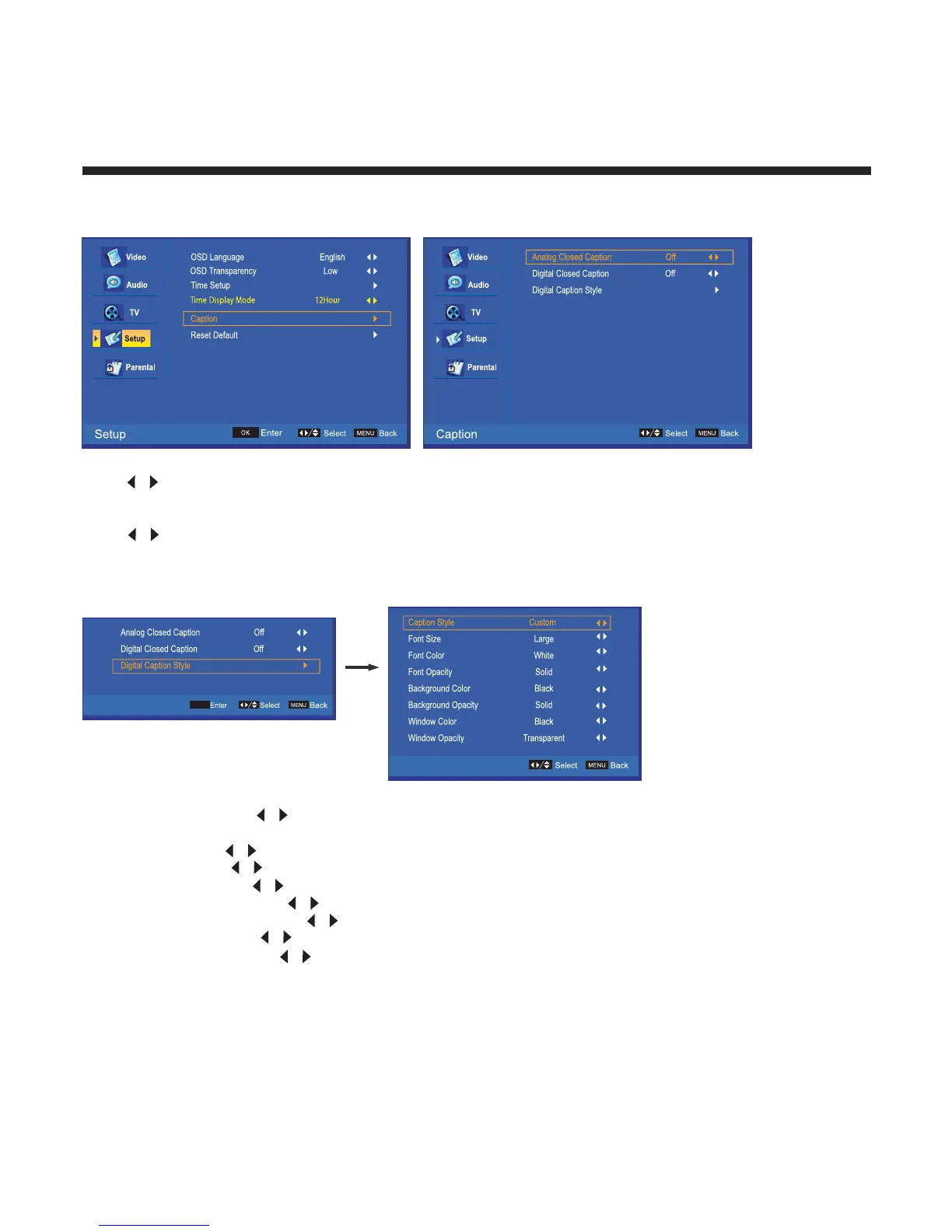 This item allows you to set the closed caption, press OK to enter Digital Caption style menu:
