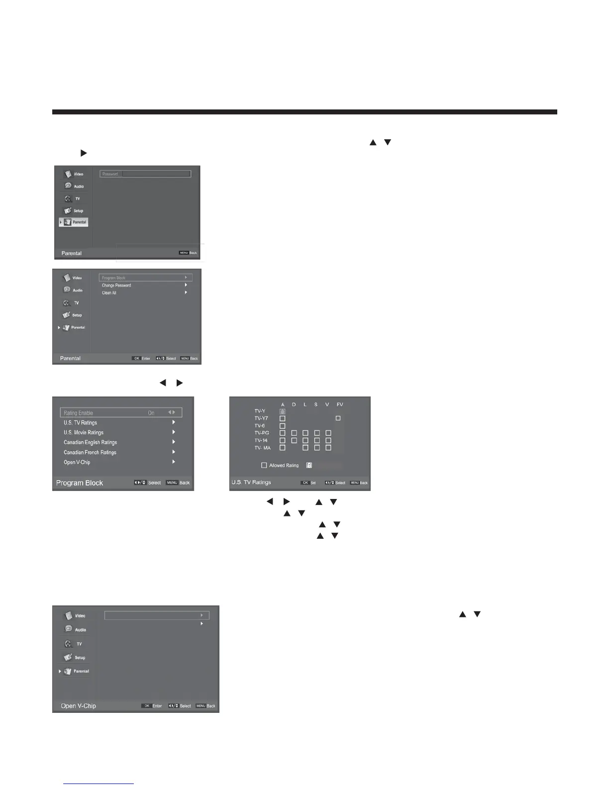 U.S. Movie Ratings: Press OK to enter, and use / to select, and press OK to confirm.