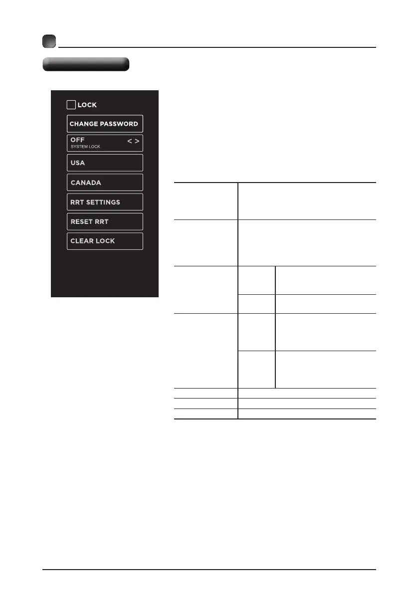 CLEAR LOCK Clear all lock settings.