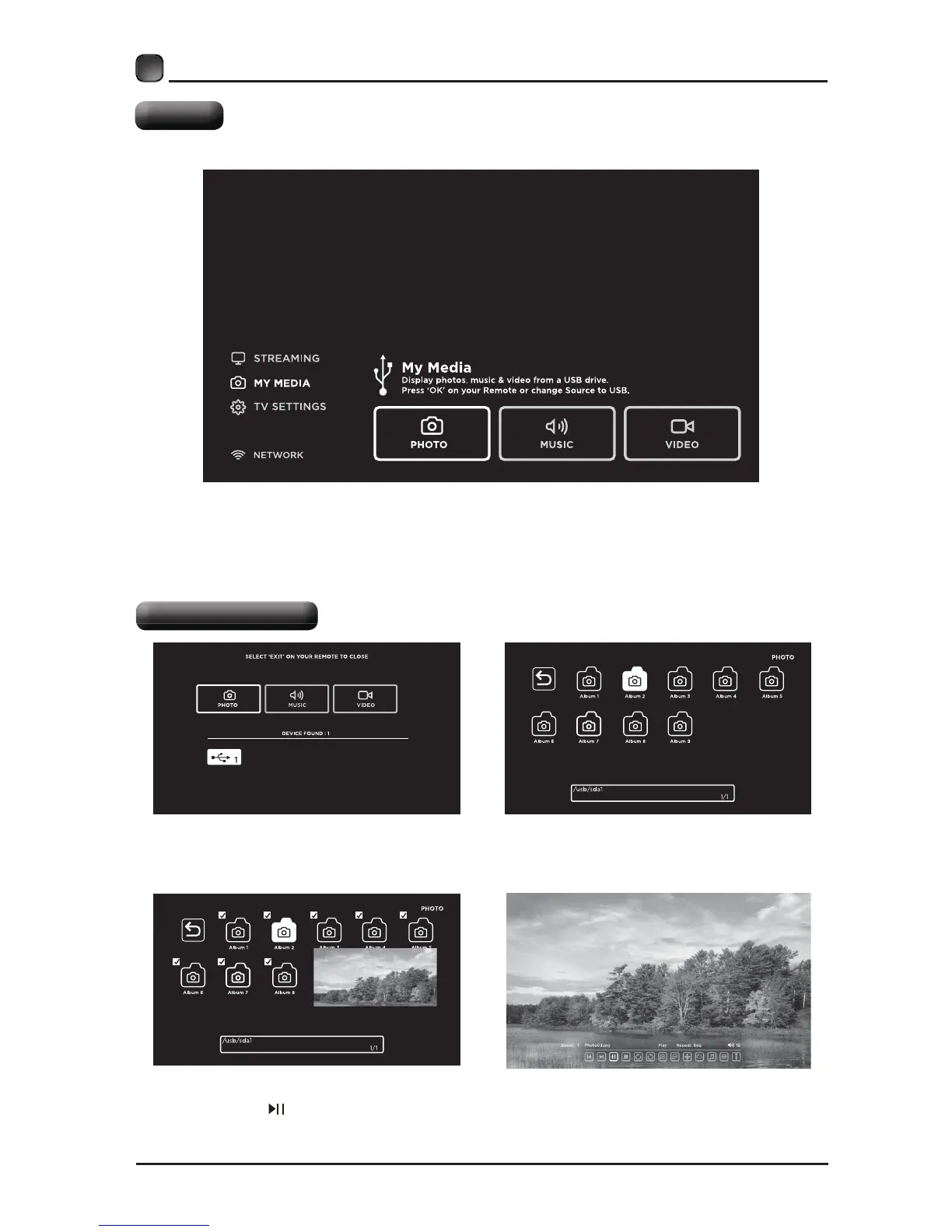 Note: Portable drives should be inserted before entering MY MEDIA menu.
