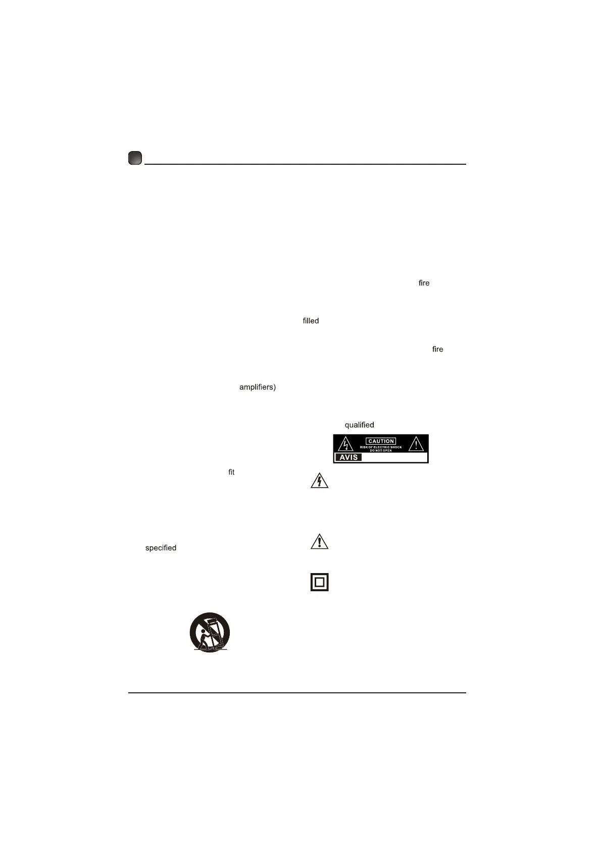 shock, do not expose this apparatus to rain