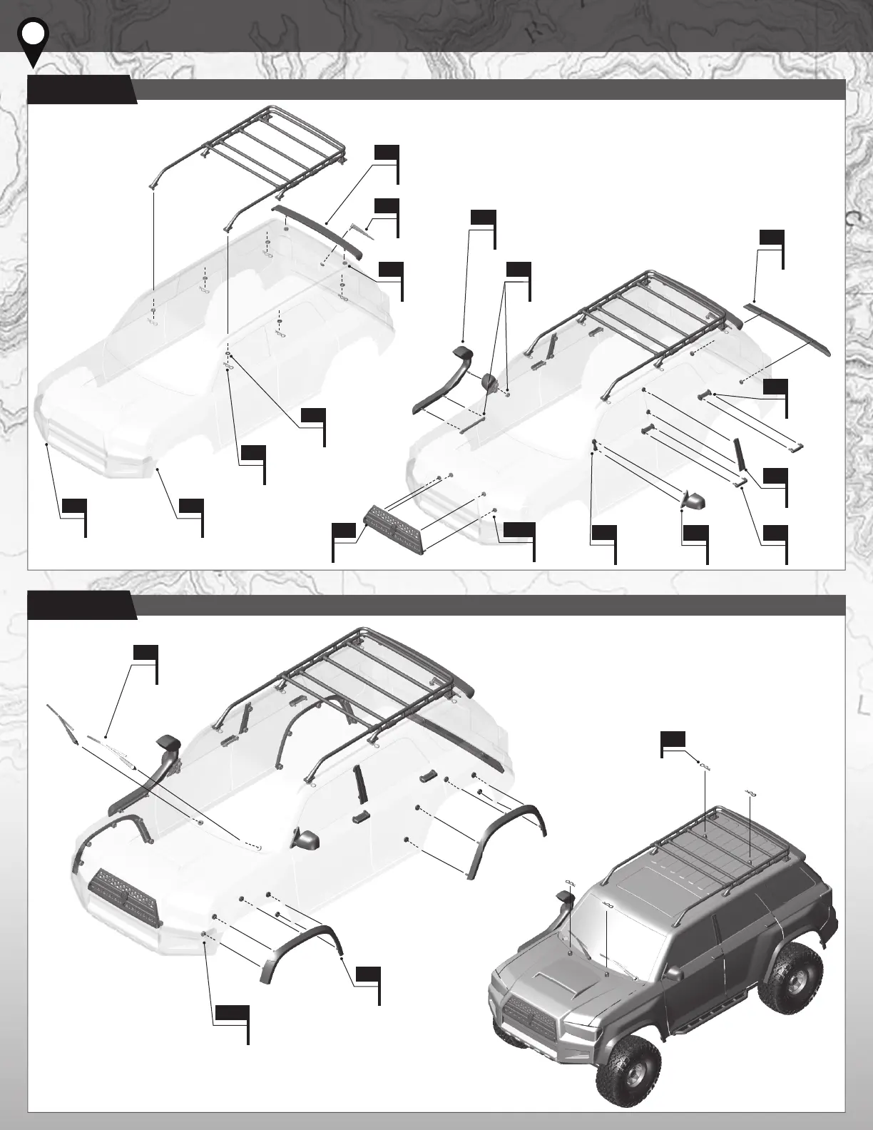 Element Enduro TrailRunner - Body Assembly Details; Gate 03: Body Accessories; Gate 04: Body Flares and Grommets