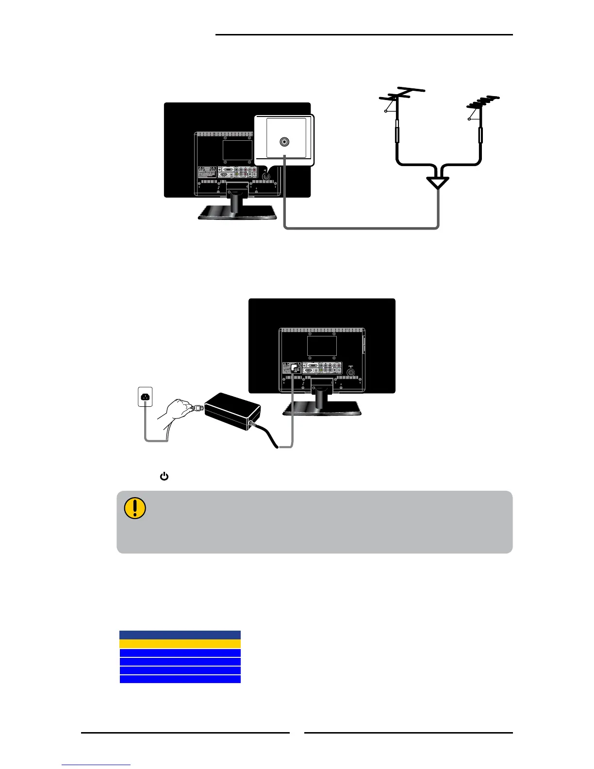 Connect the DC plug of the AC-DC adapter to the DC 12V port at the back of the TV.