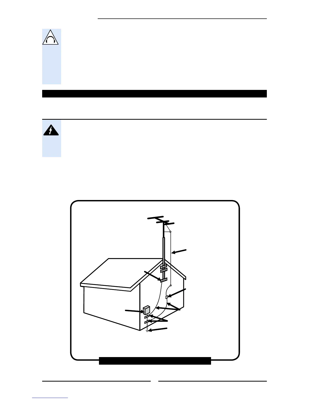 ▪ When installing an outdoor antenna system, extreme caution should be taken to prevent