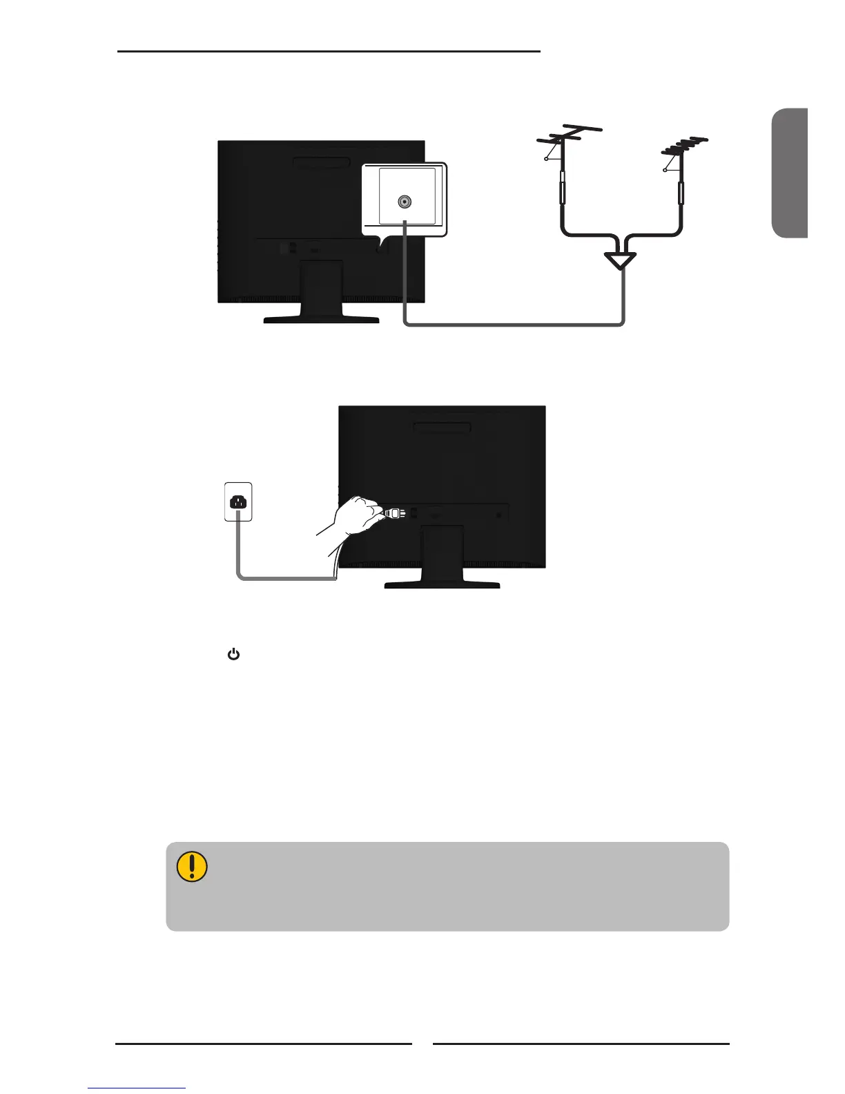 Connect the AC power cord at the back of the TV and connect the power cord to wall outlet.