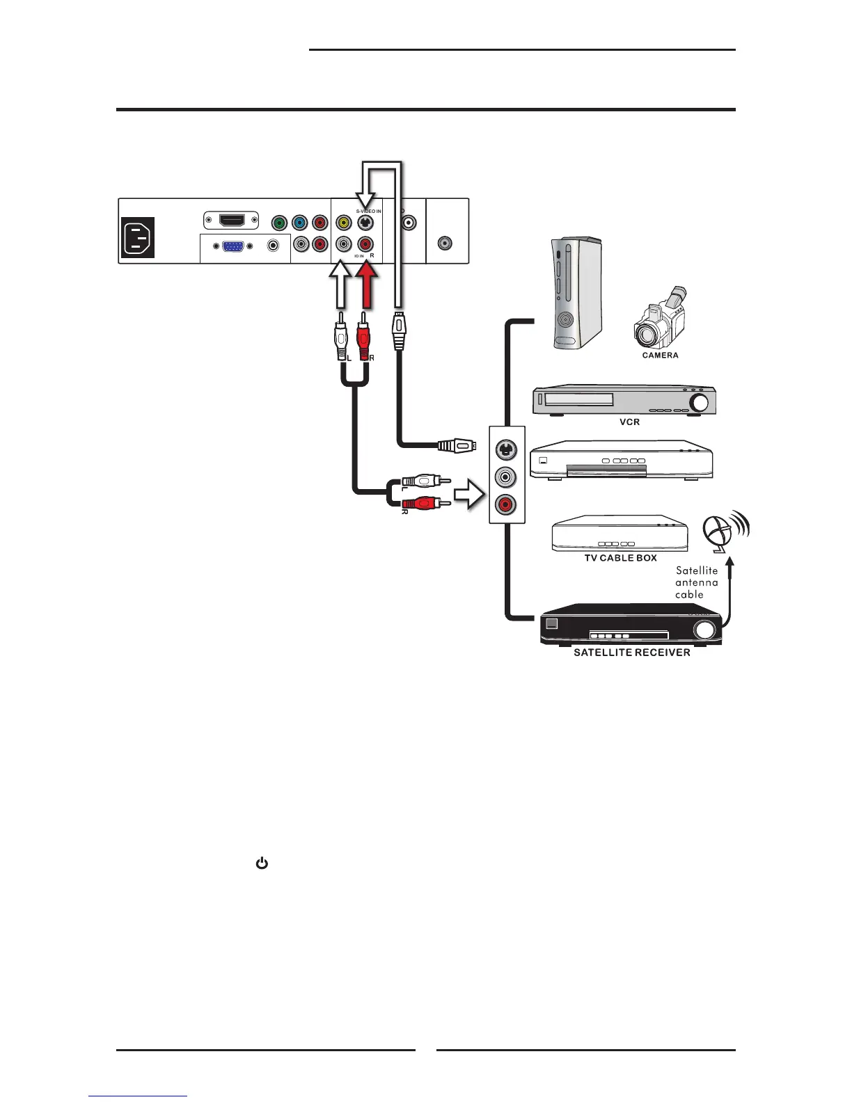 TV’s audio inputs. Use a S-Video cable to connect the external A/V device’s S-Video
