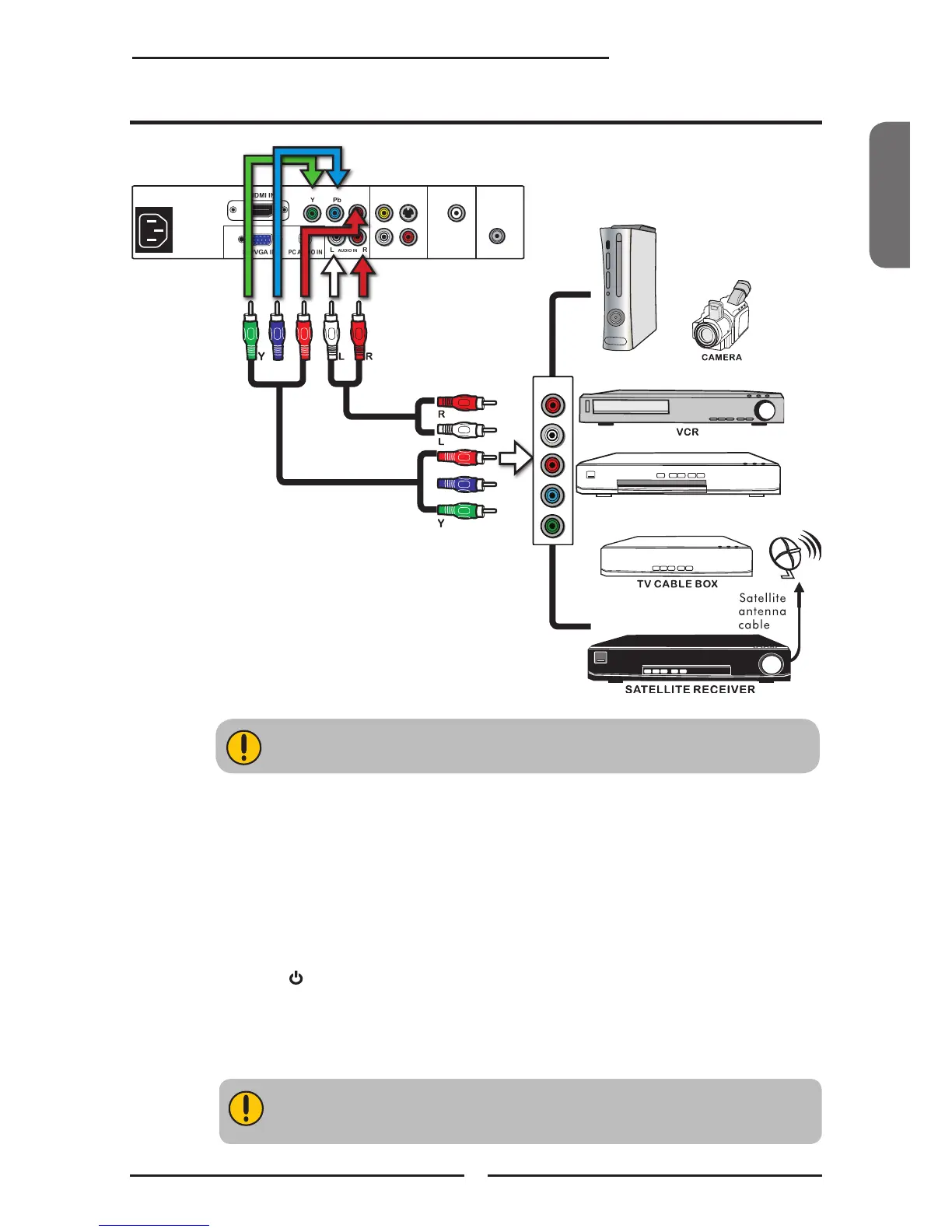 Connect all AC power sources, before turning on the power switch of the LCD TV or