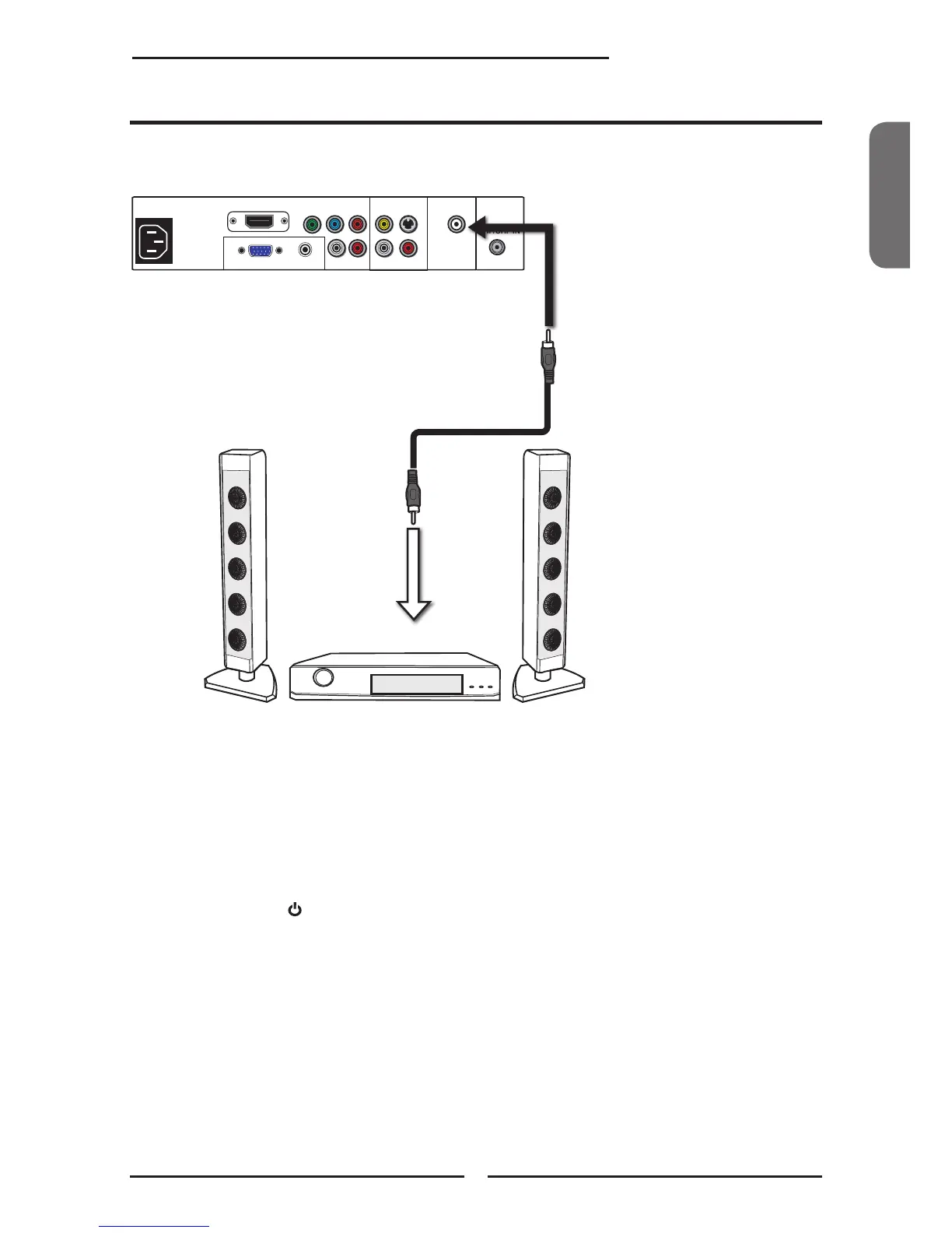Use an audio cable to connect the audio receivers audio LINE IN jacks to LCD TV’s