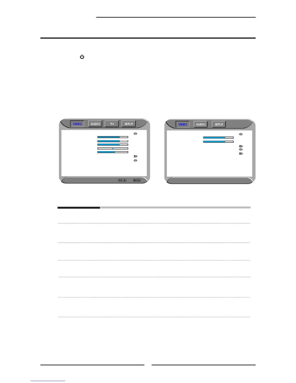 Use the ▲▼buttons to highlight an individual VIDEO option, use the ◄► buttons to