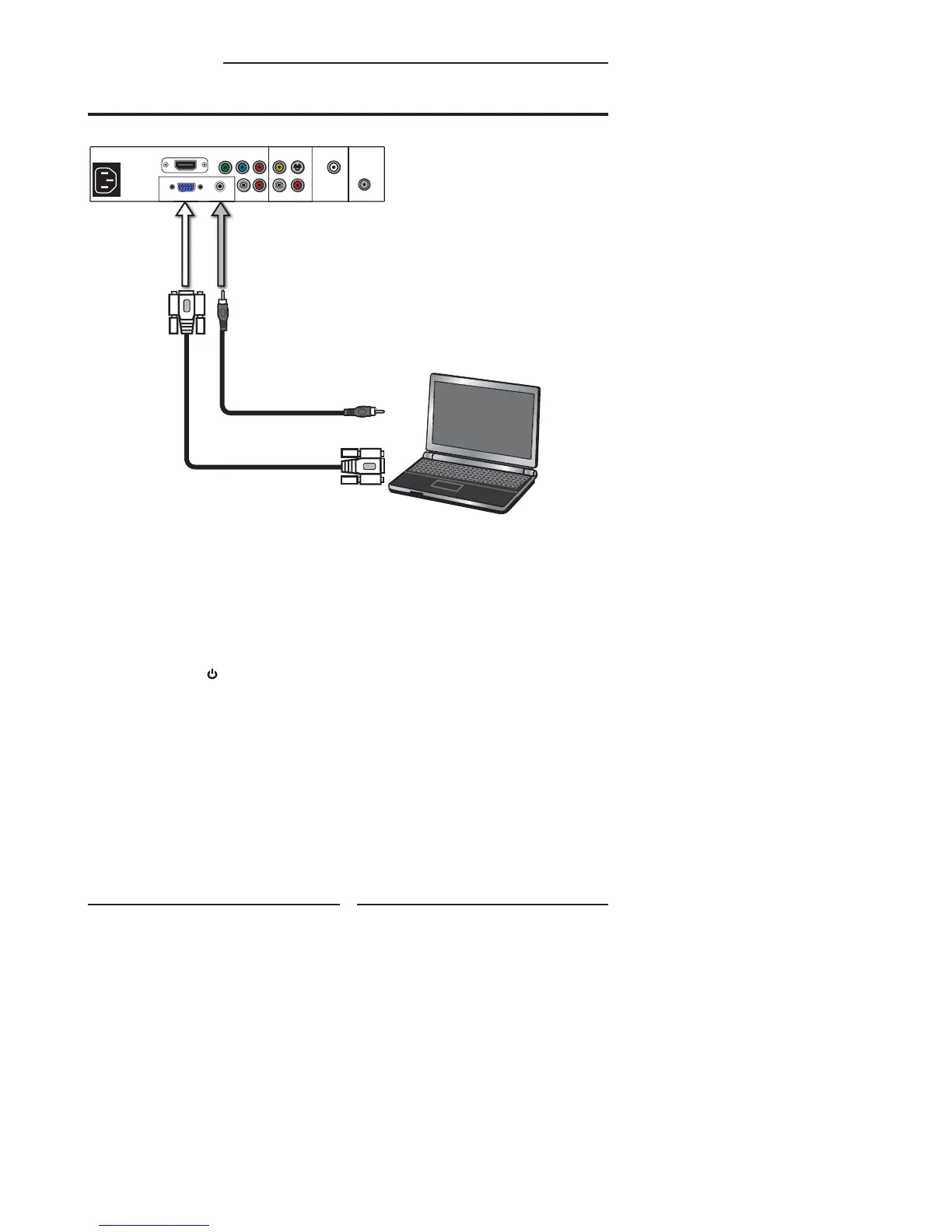 Use a D-SUB cable to connect the PC’s D-SUB output jack to the LCD TV’s VGA input