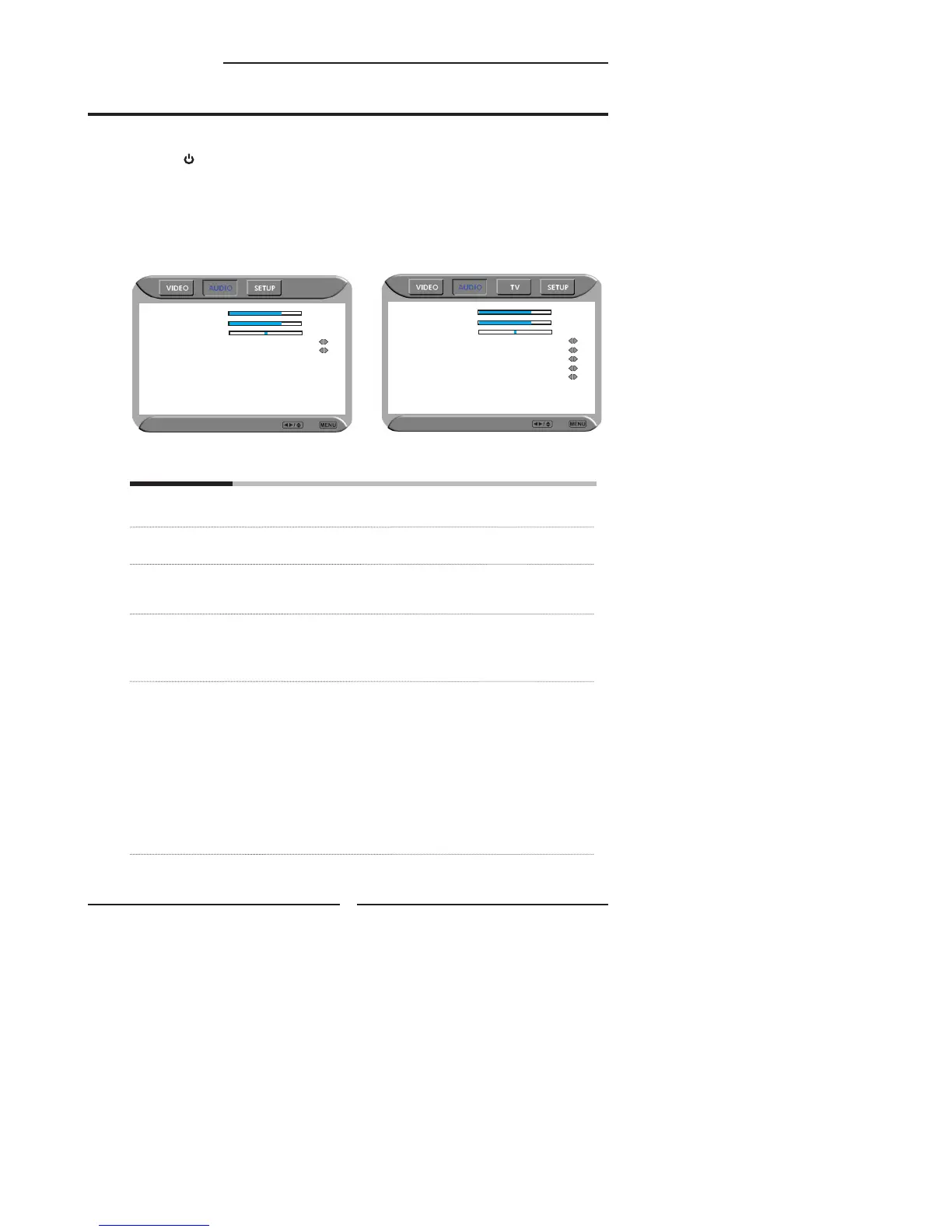 Use the ▲▼buttons to highlight an individual AUDIO option, use the ◄► buttons to