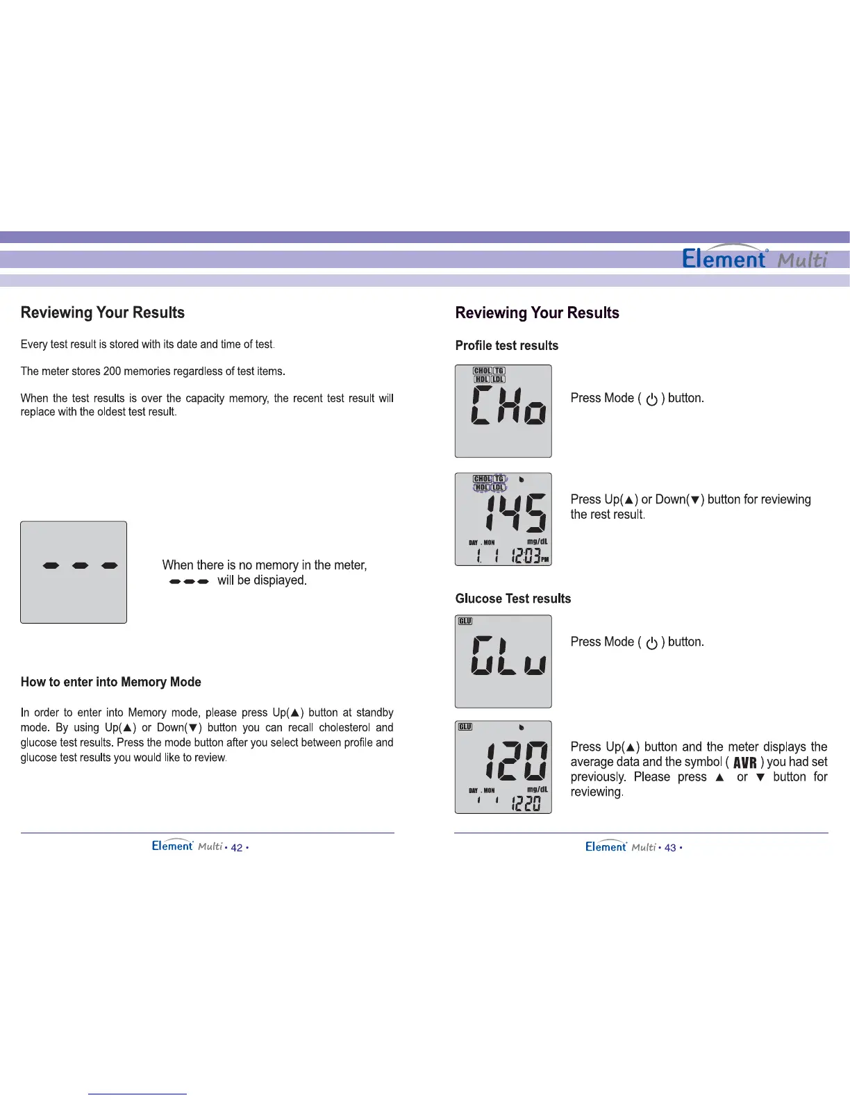 Element Multi - Reviewing Test Results; Profile Test Results Review Process; Glucose Test Results and Averages Review