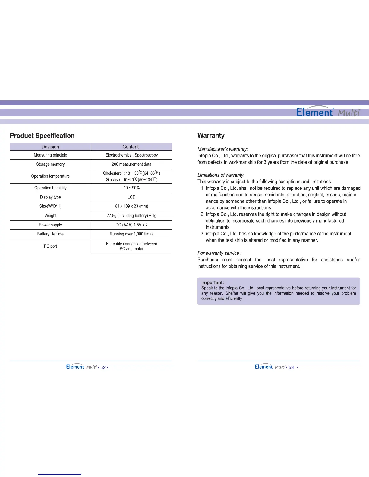 Element Multi - Product Specifications; General Meter Specifications; Product Warranty Information; Warranty Coverage and Limitations