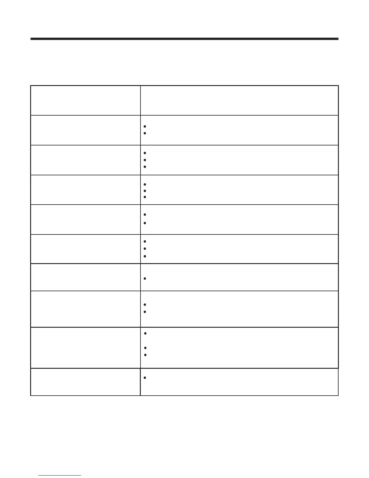 Before calling a service technician, please check the following table for a possible cause of the problem and