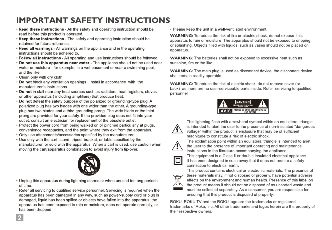 Element Roku TV E1AA24R - Important Safety Instructions; General Safety Precautions; Electrical Safety and Warnings