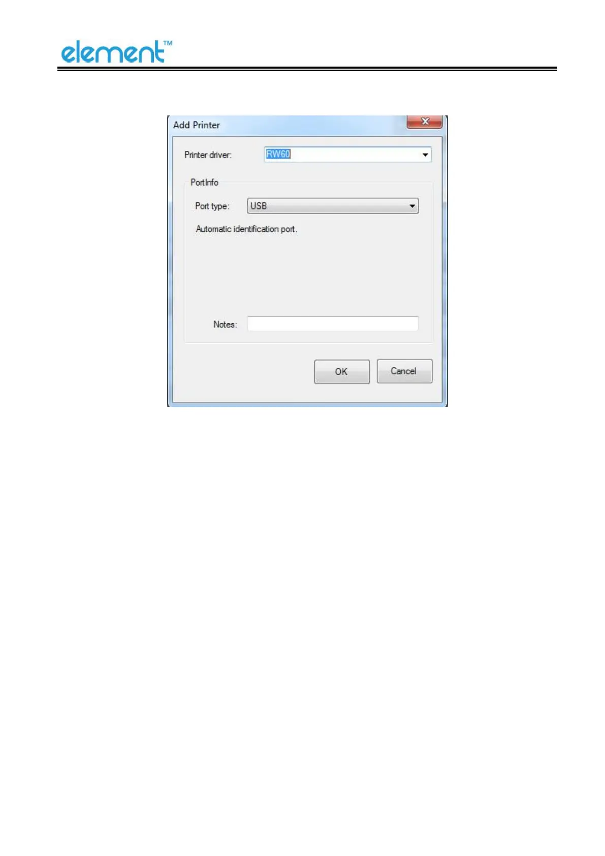 2) Choose the appropriate printer type and port. Then click “OK”. (Take RW60for example.)