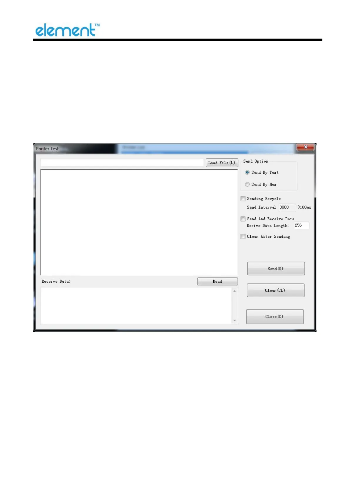 In the command test, you can send command to the printer. Input text or hexadecimal data. Select a