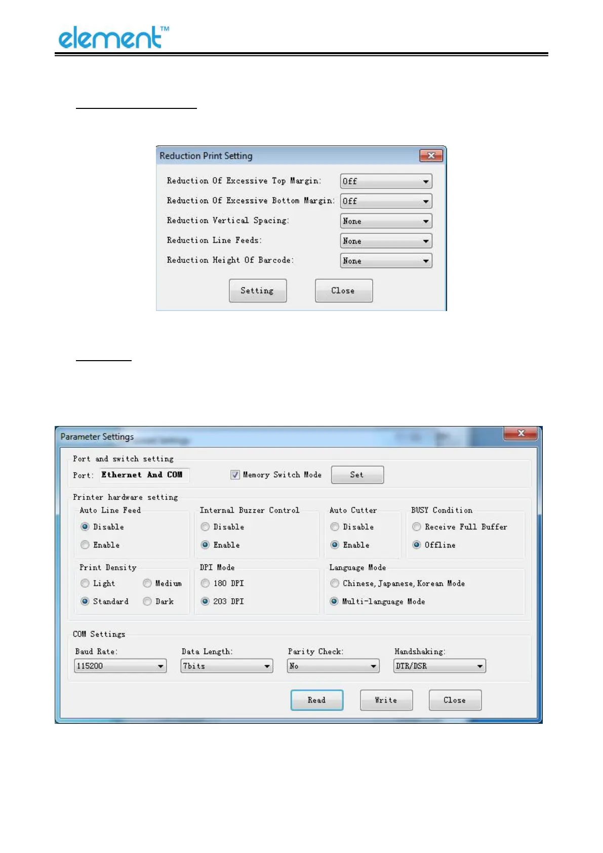 Click "Read" to get the printer parameters, click "Write" to send the modified parameters to the