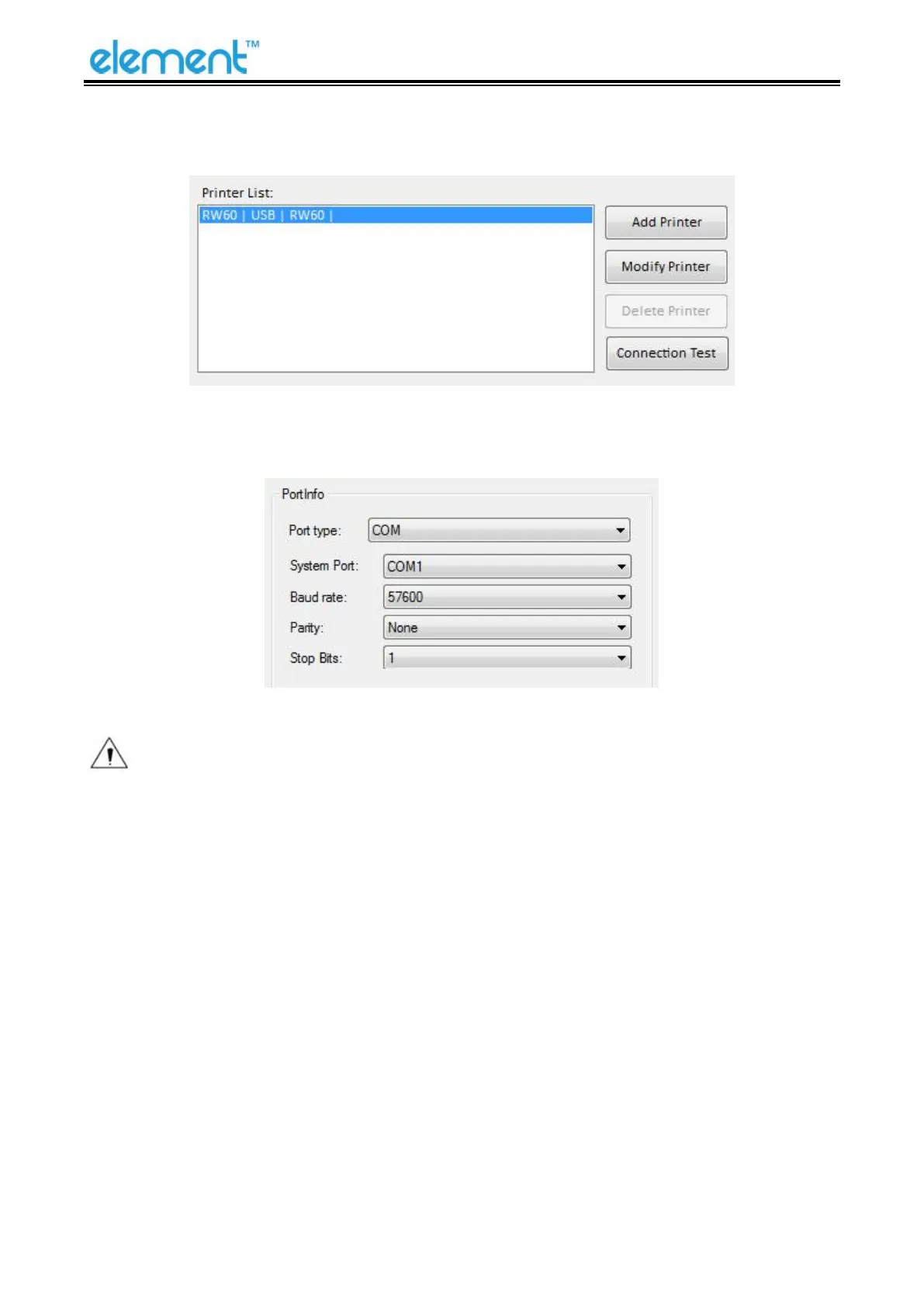 Select the port category "COM" and set the baud rate to the value "57600" as shown above, and