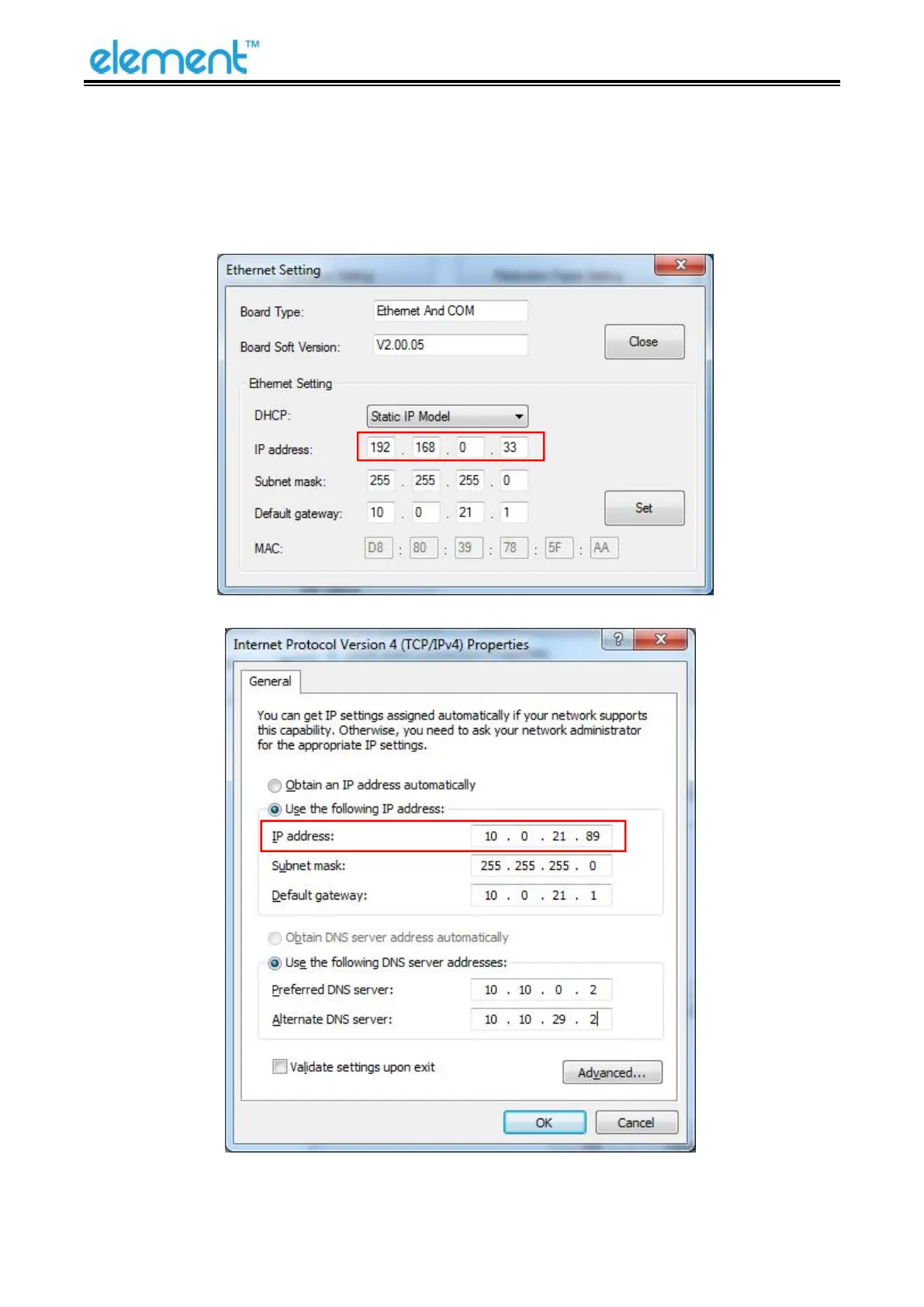 1) Change the printer IP address so that the printer IP address (such as: 192.168.0.33) is the same