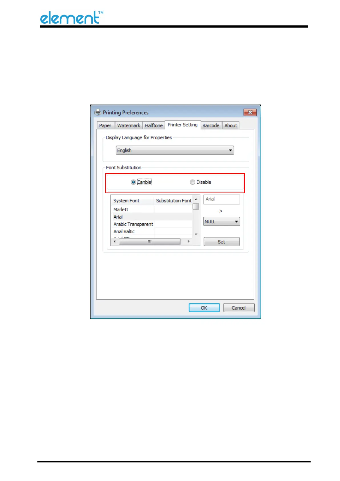 ● Turn on the “Font Substitution”, select the system text need to be replaced (for example, Arial),