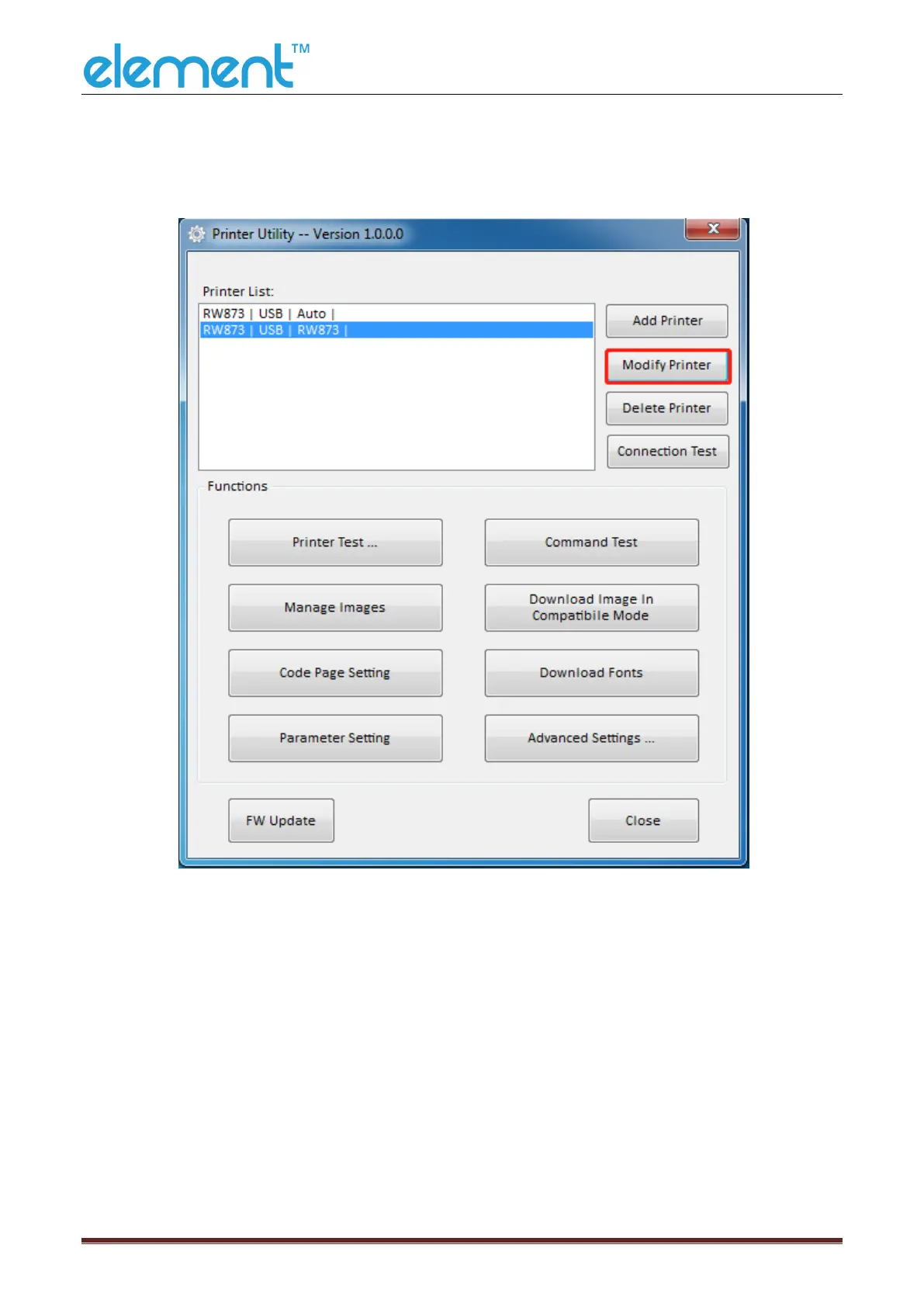 1) Choose the printer you want to modify in the list. Click “Modify Printer”.