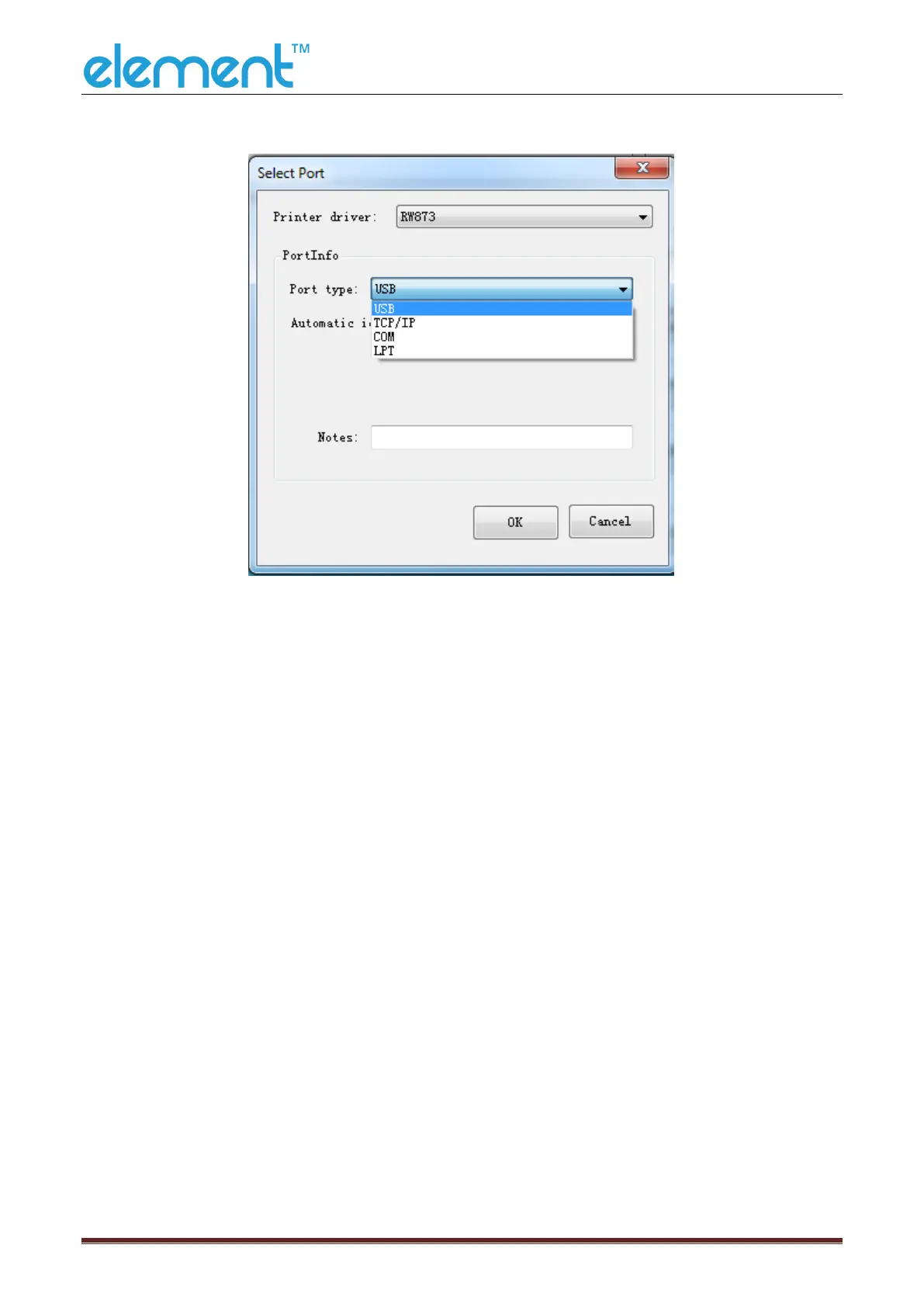 2) Choose the new printer and new port. Then click “OK”.