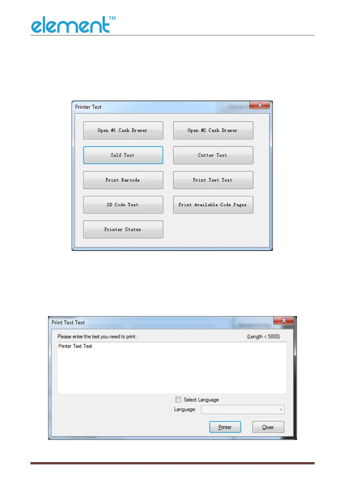 Click "Print Test Text", input the text you want to print. When you click "Print", the