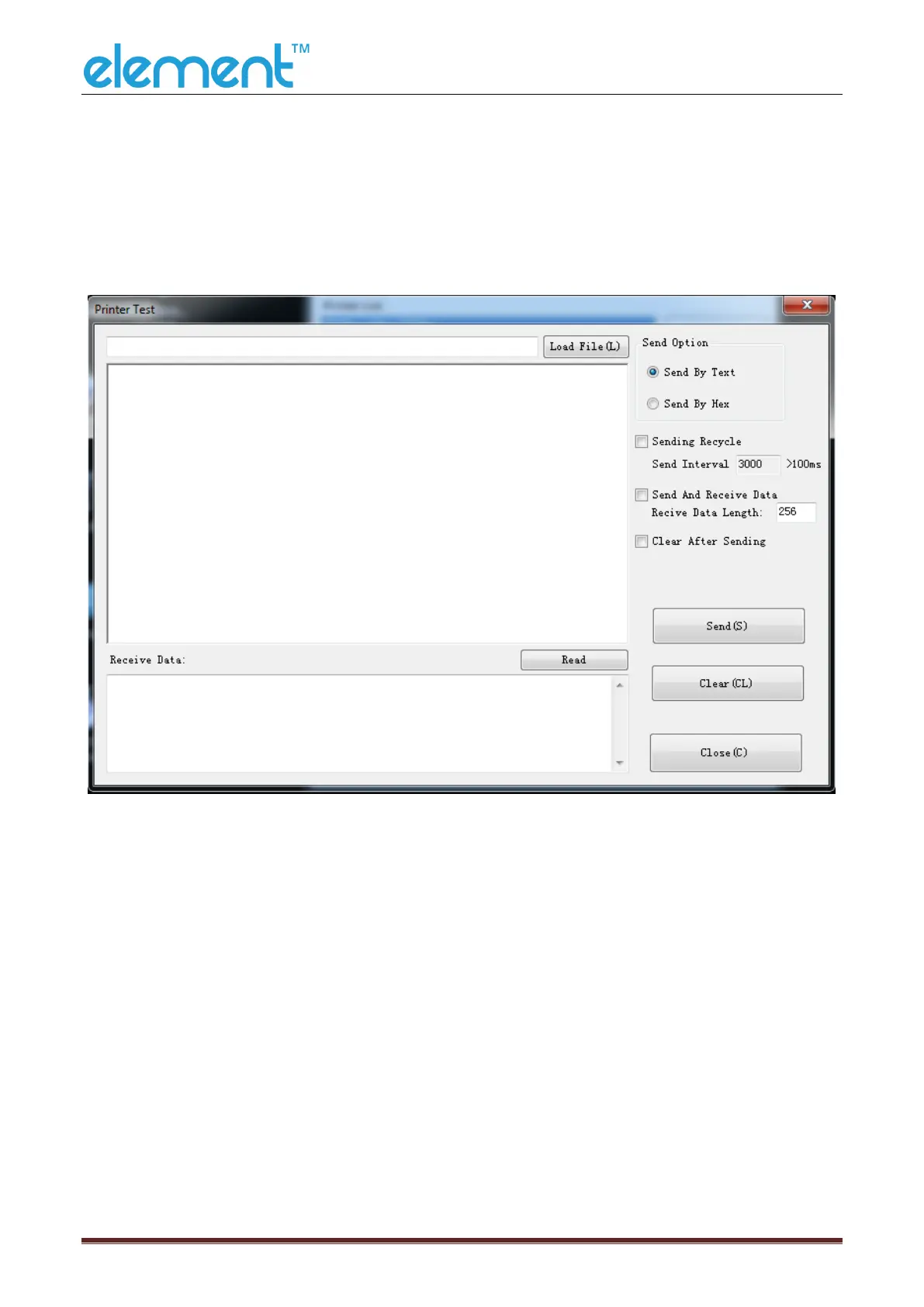 In the command test, you can send command to the printer. Input text or