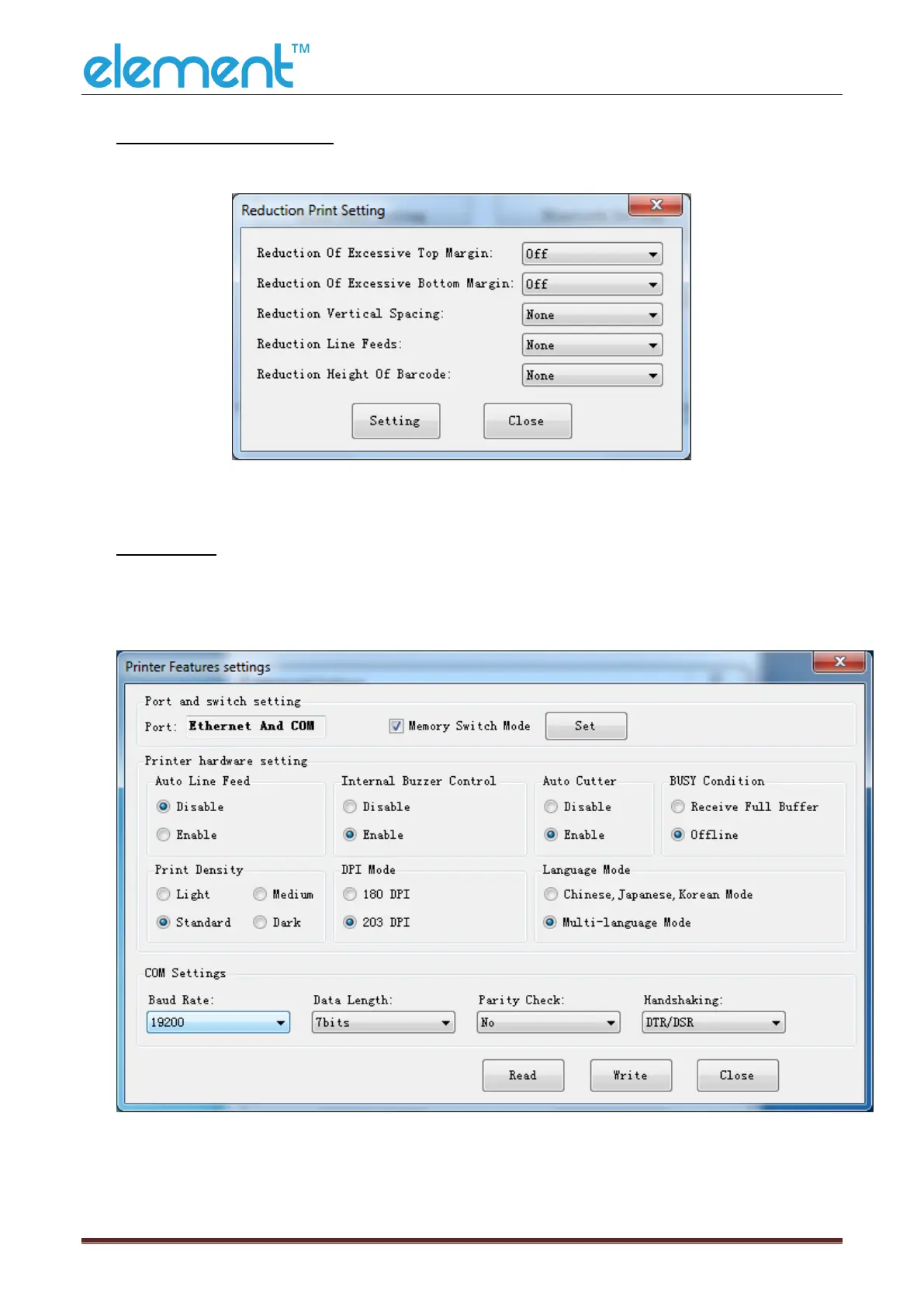 Click "Read" to get the printer parameters, click "Write" to send the modified
