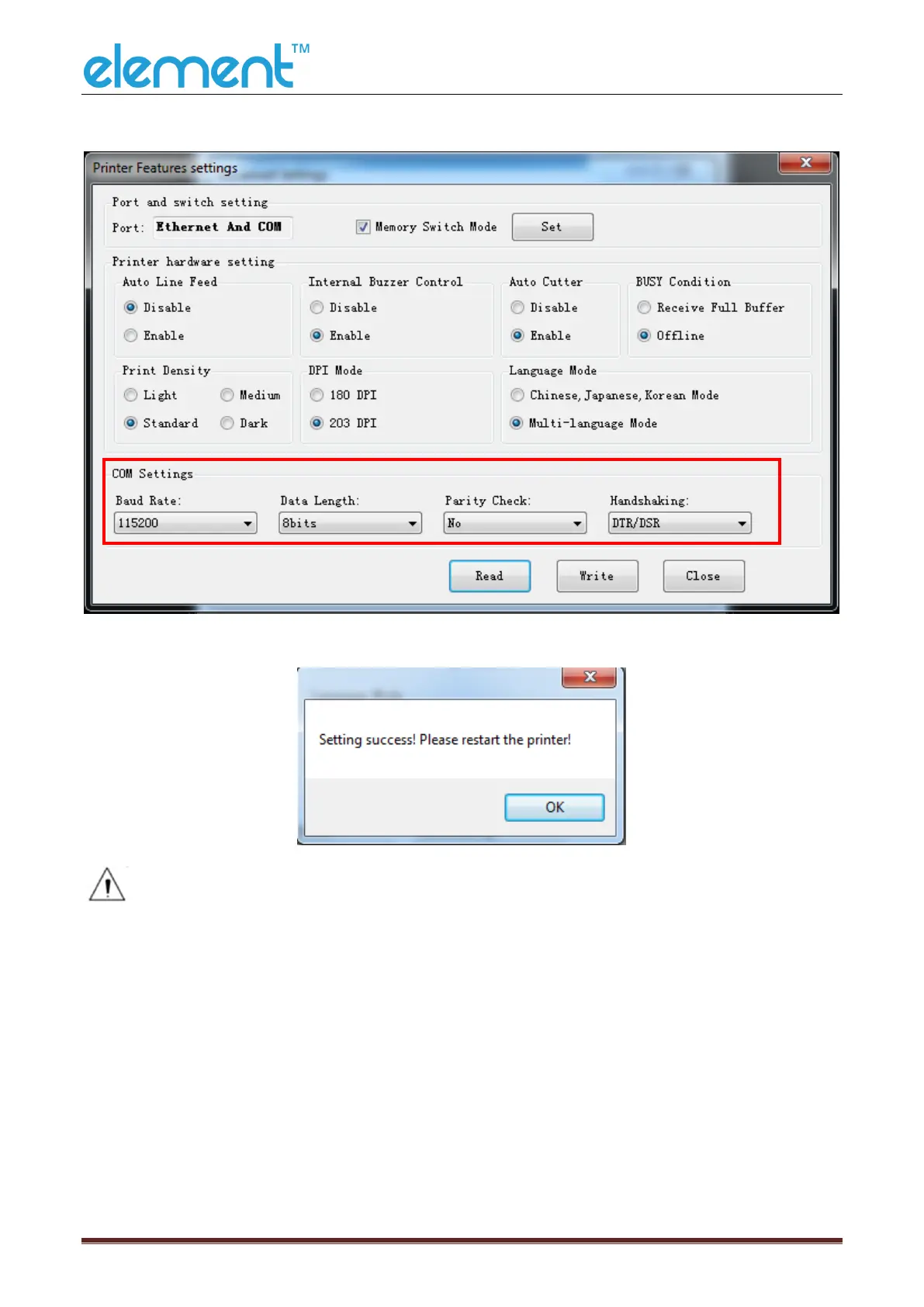 Note: When DIP setting is set in soft, the DIP switch in the bottom of printer is disable.