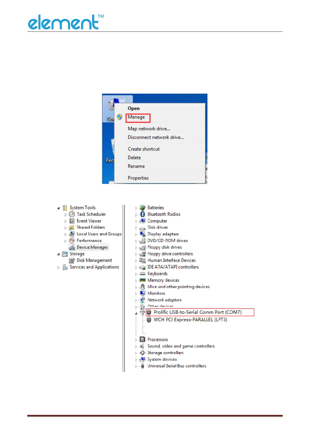 2Click "Device Manager" to view the virtual port. (such as: COM7).