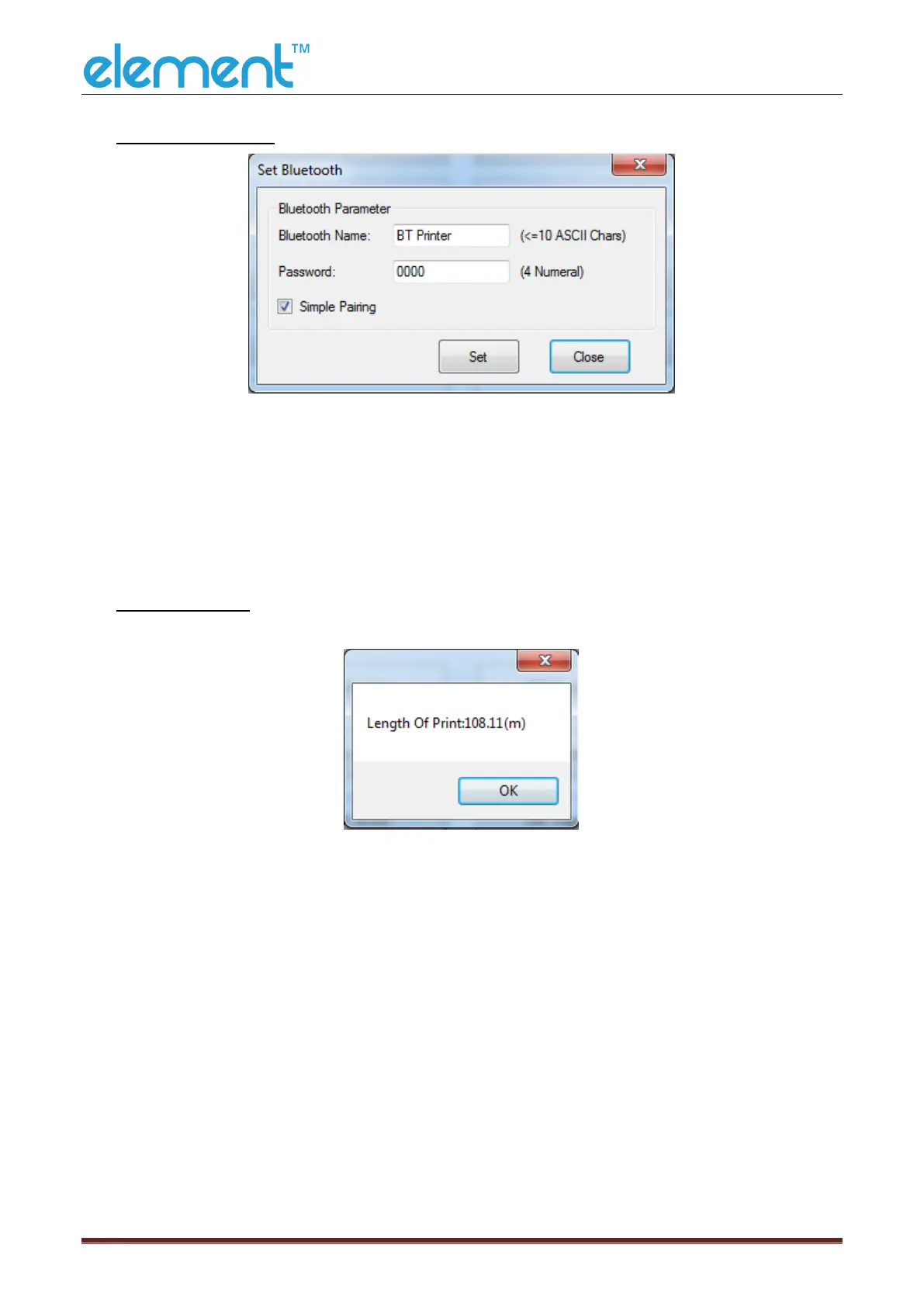 Bluetooth password to connect, when the "simple pairing" is not checked, the printer