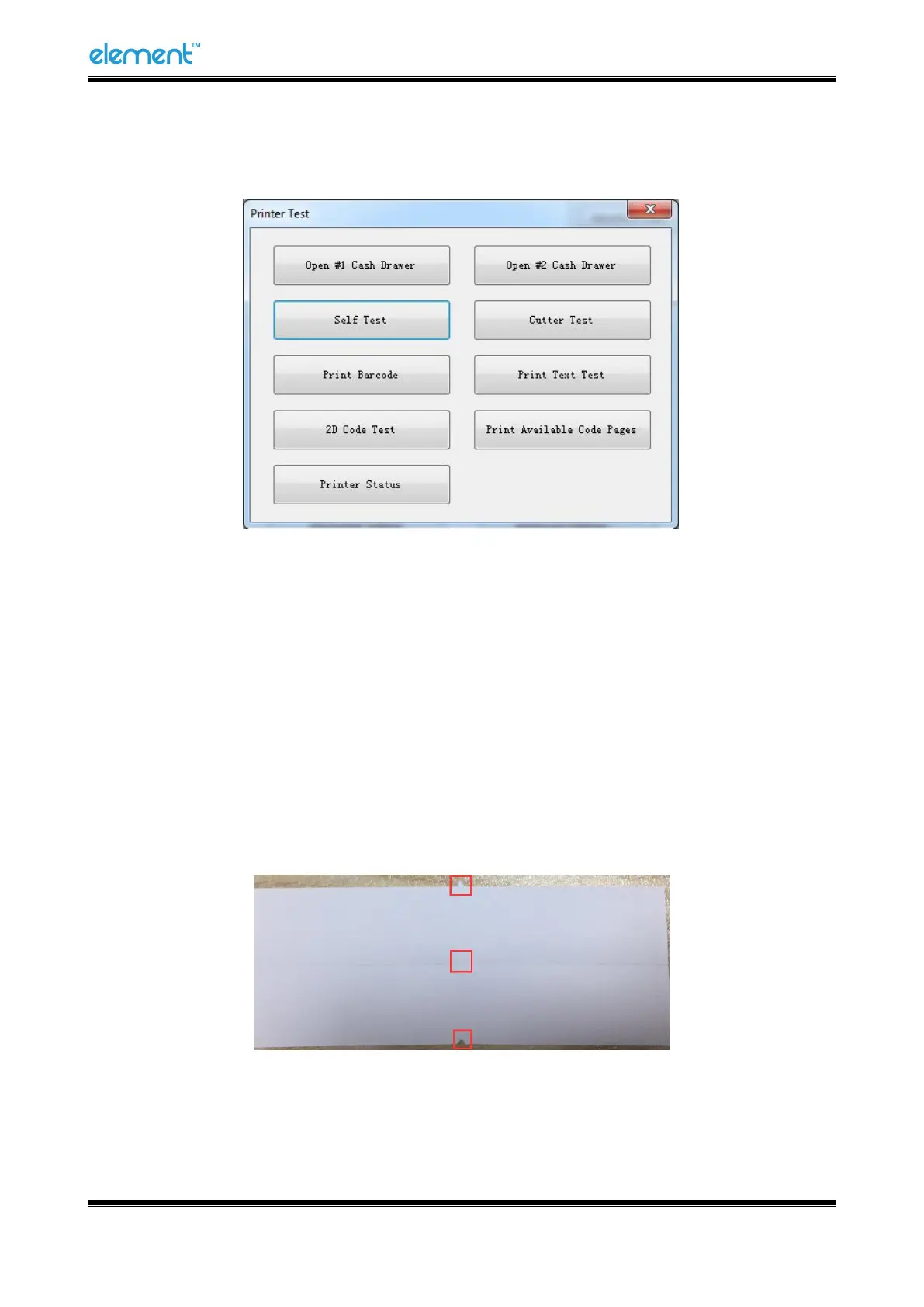 Click the cutter test and the paper will be cut automatically. Cutting method is partial cut. (Partial