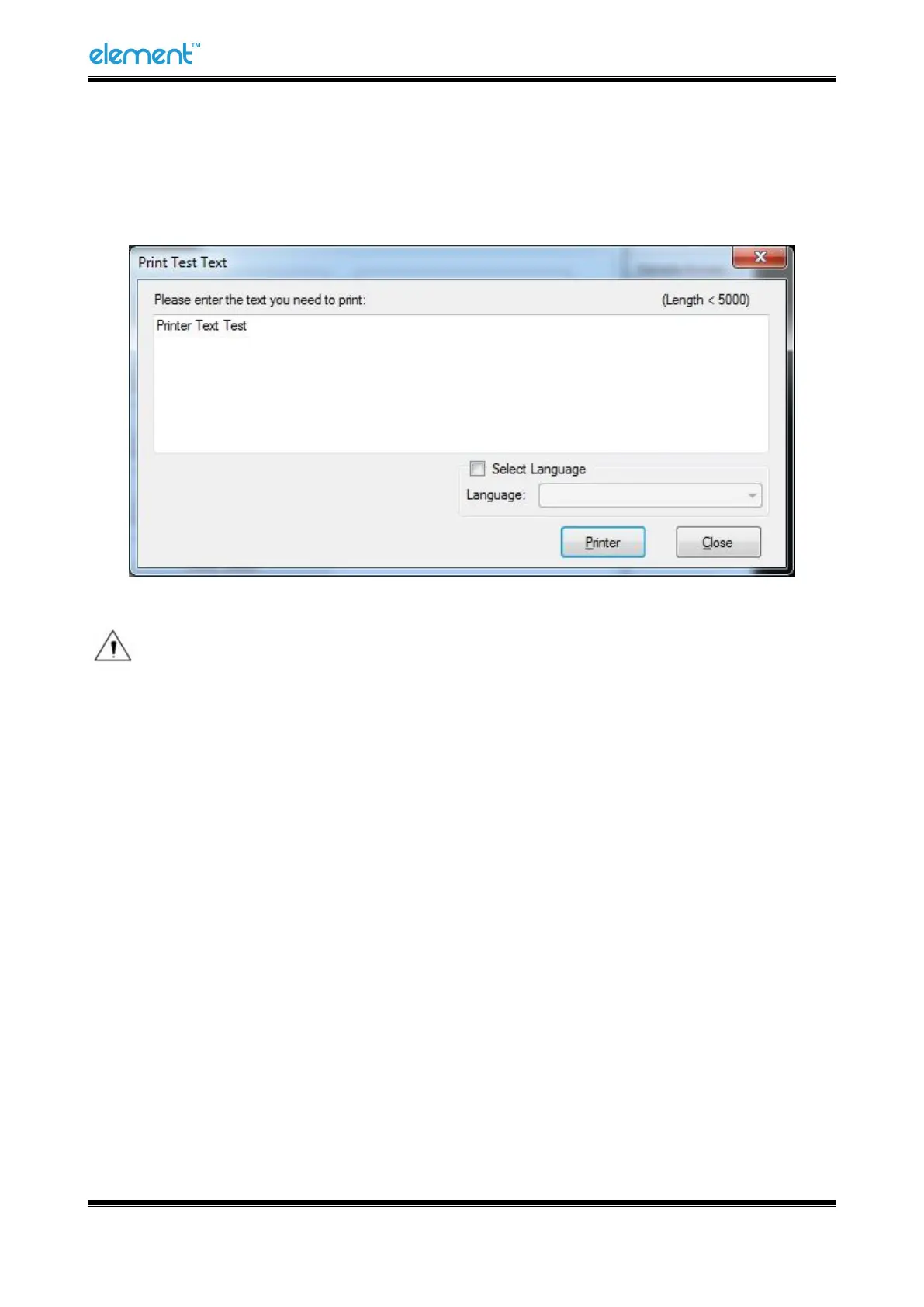 Click "Print Test Text", input the text you want to print. When you click "Print", the printer starts
