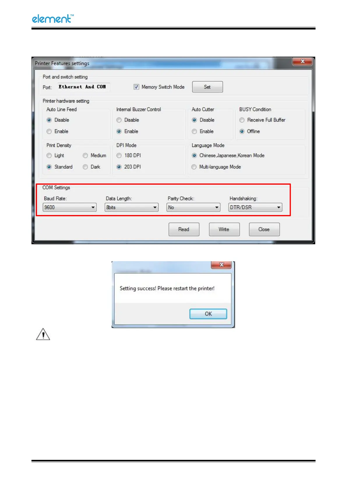 After setting the DIP successfully, you need to restart the printer to take the settings
