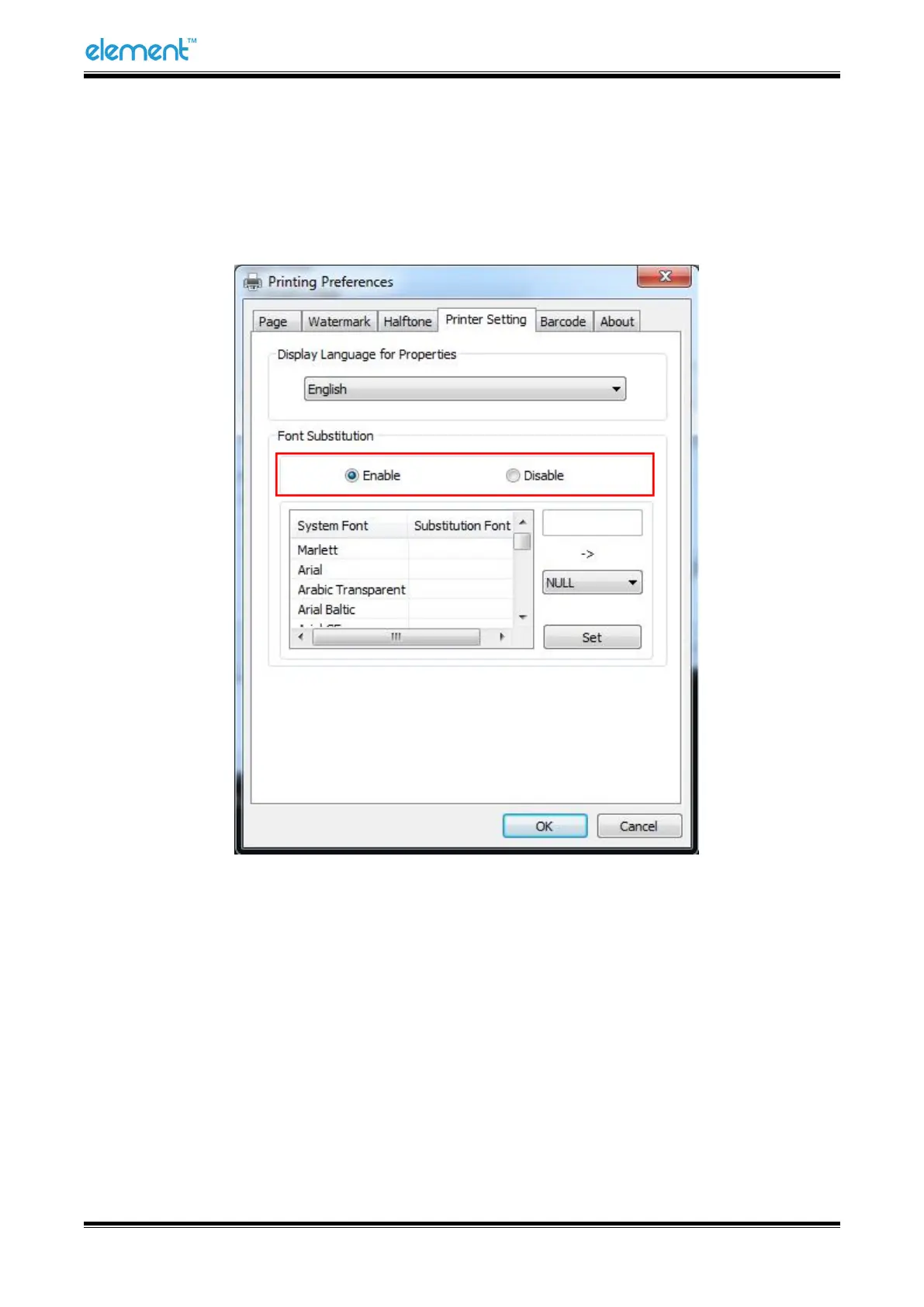 ● Turn on the “Font Substitution”, select the system text need to be replaced (for example, Arial),