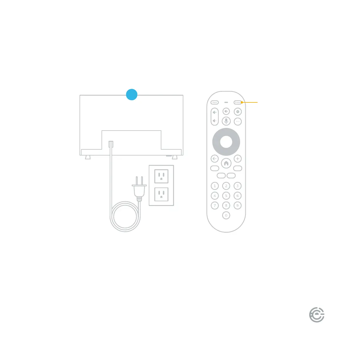 Plug your TV into the wall outlet and press the power button on your remote control. Your TV will display a