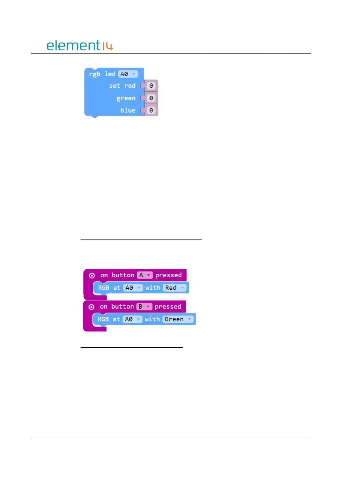 When you press button A the RGB LED will light up red. Pressing Button B will cause the