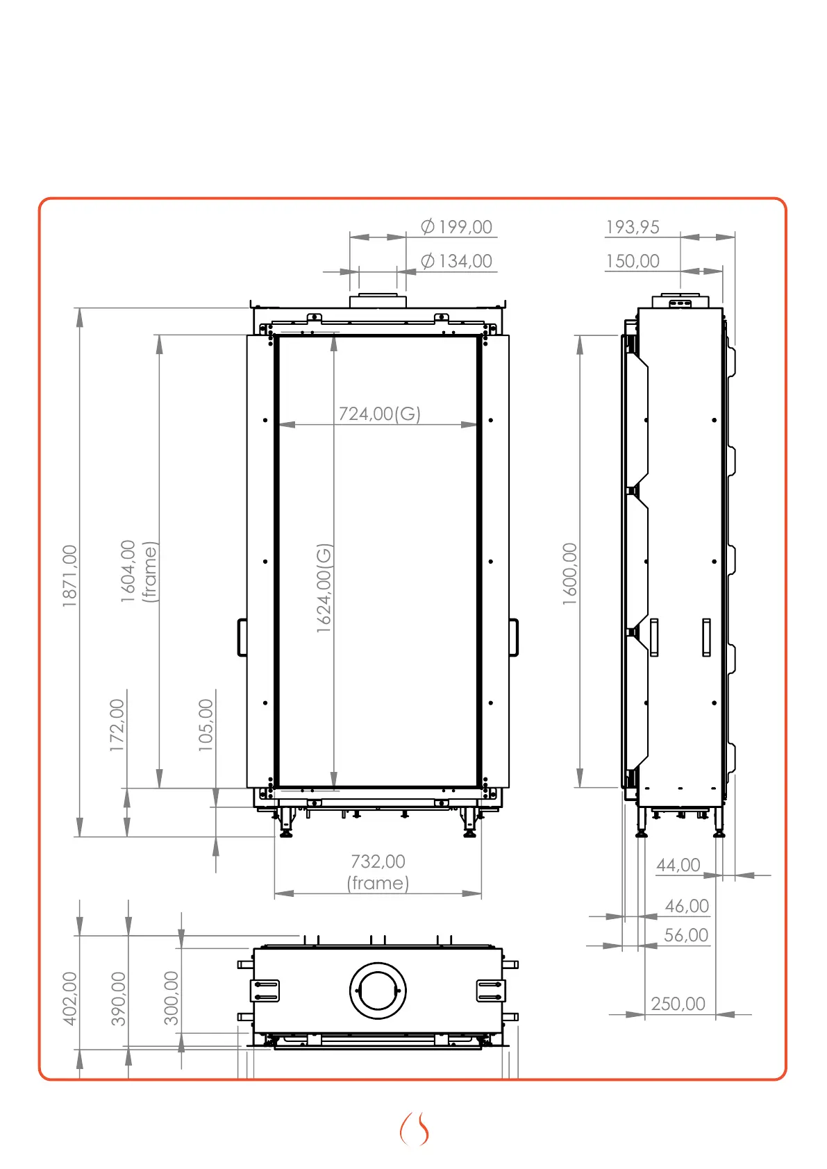 On this page you will nd trhr dimensional drawings of the Fireplace with