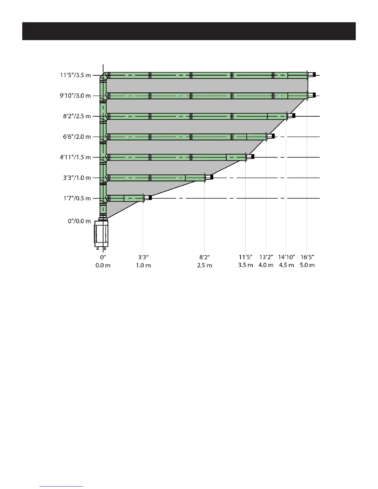 - 40”/1000 mm must be subtracted from the horizontal length allowance when using a 90° elbow