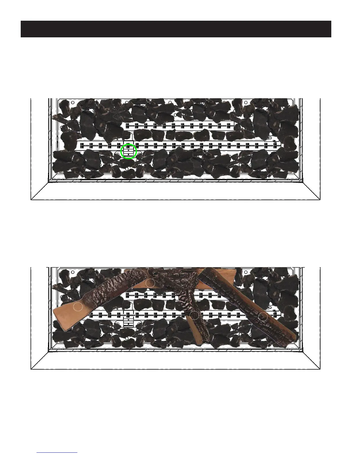 embers on the hearth panel and burners as shown in Figure 34. Ensure that the area inside the ember shield (circled) is left clear.