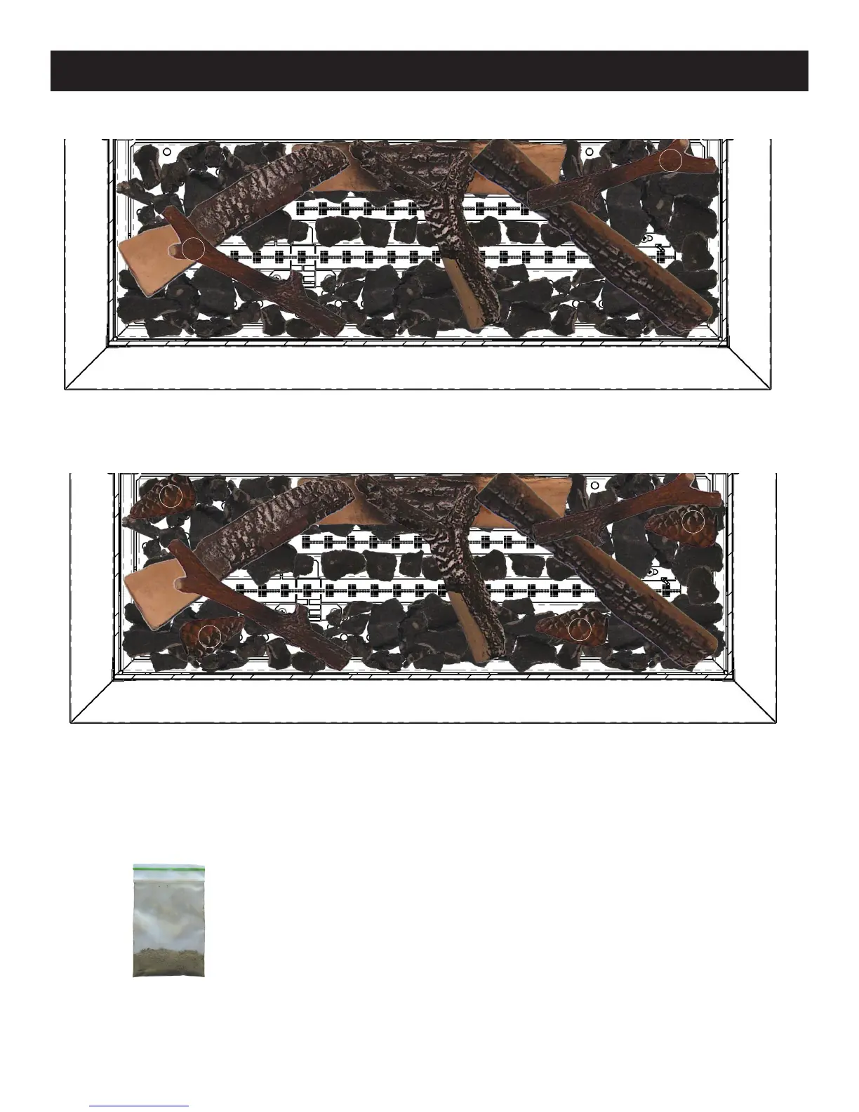 The bag of ash (shown on the left) comes with your logset. Its purpose is to make the logs look