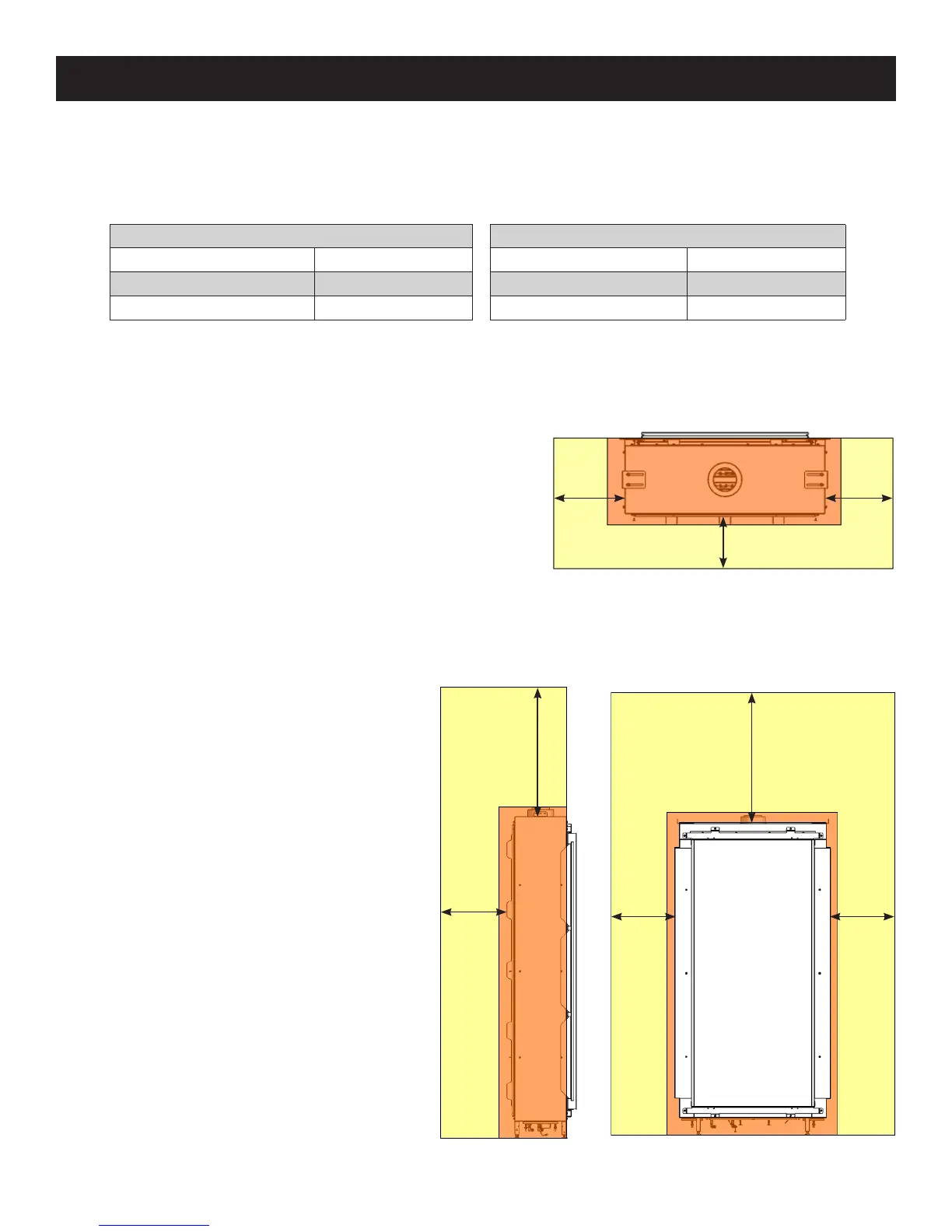 Please refer to the “Reduced Clearance to Existing Combustible Wall” section for use of combustibles inside of the above clearances.