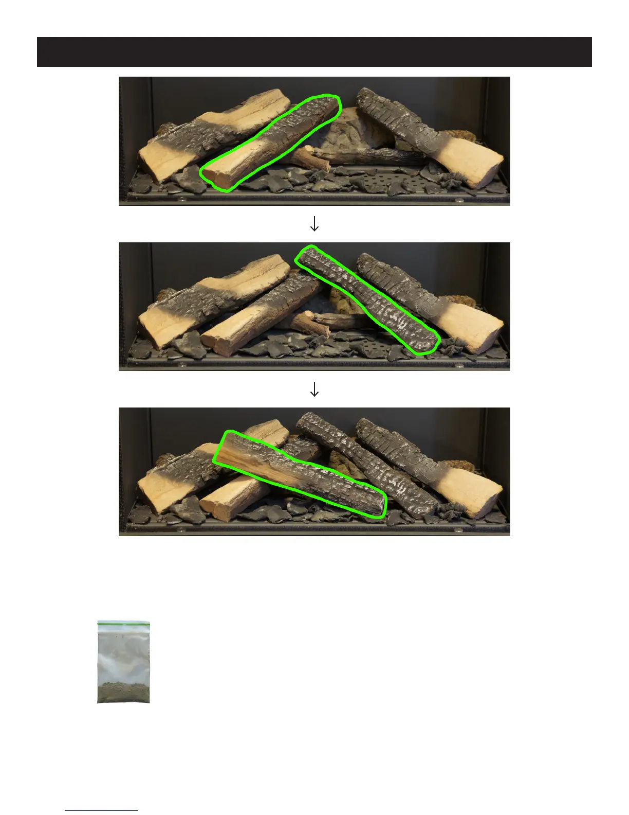 The bag of ash (shown on the left) comes with your logset. Its purpose is to make the logs look