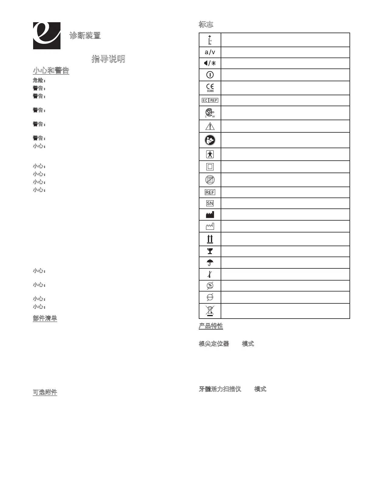 小心: 此设备经检测符合“医疗设备指令 93/42/EEC (EN 60601-1-2)”
