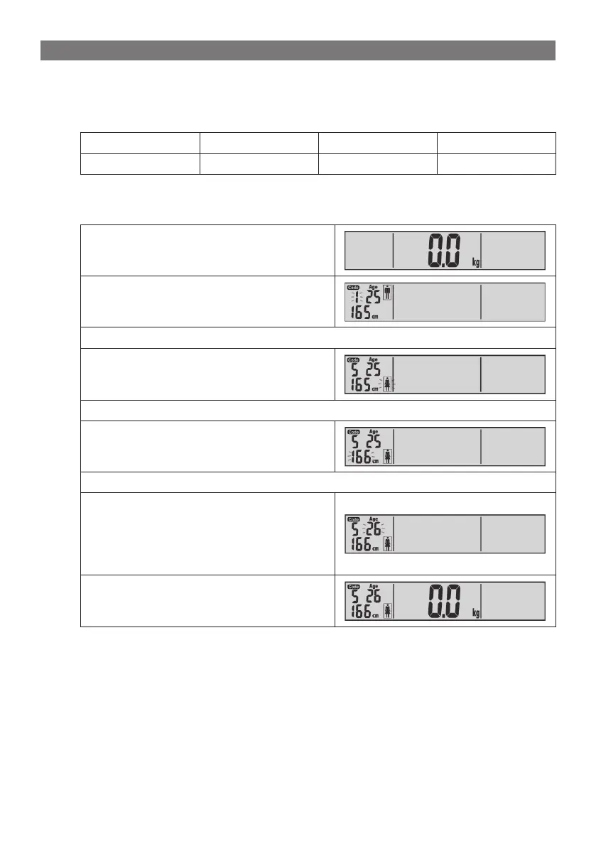 Example: the 5th user, female, 166 cm, 26 years old can set her parameters as